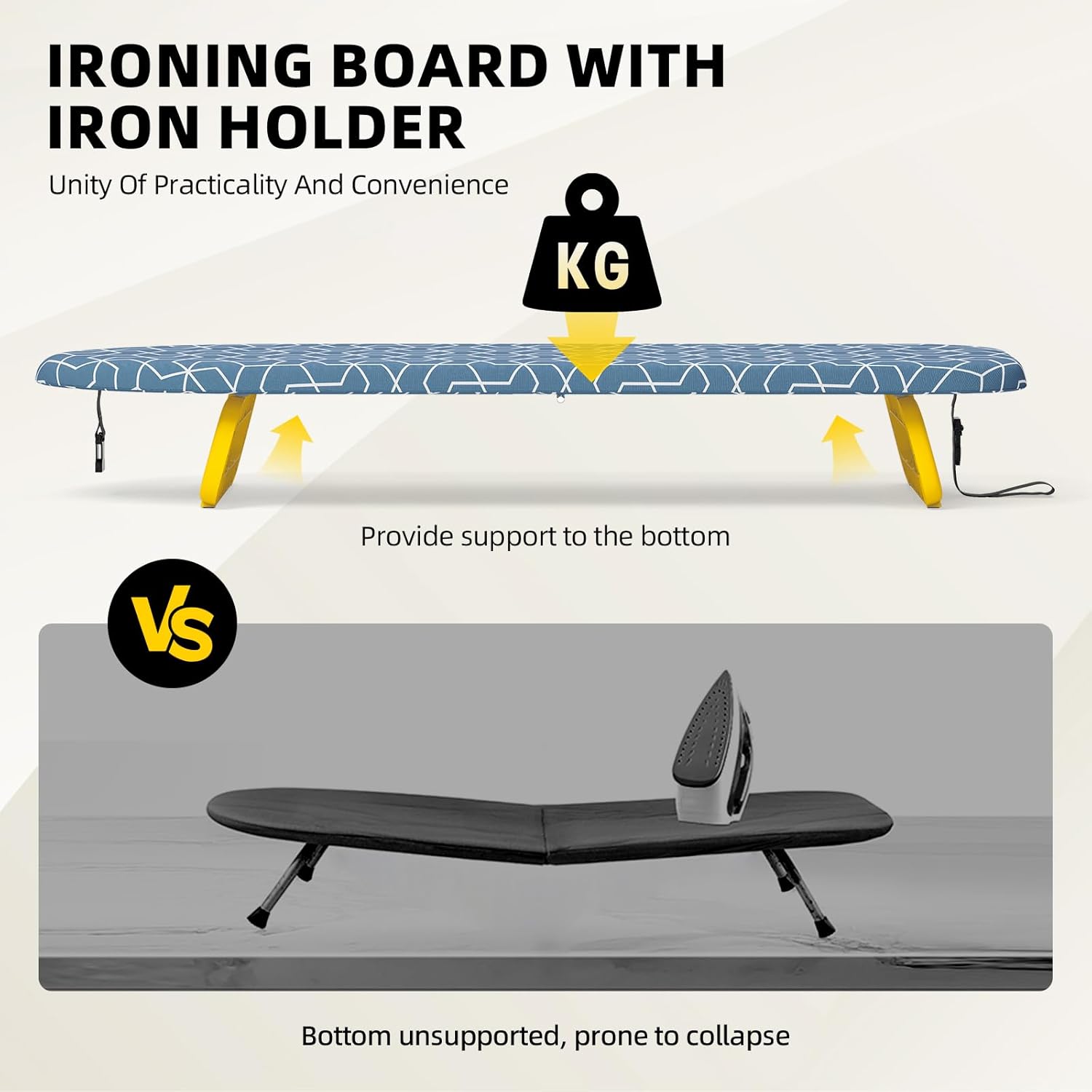 - [Fashionable and Sturdy ] With anti-slip feet and safety lock, the small foldable table top iron board provides amazing stability during ironing. In addition, the unique feet design brings a modern and fashionable appearance for our mini ironing board.
