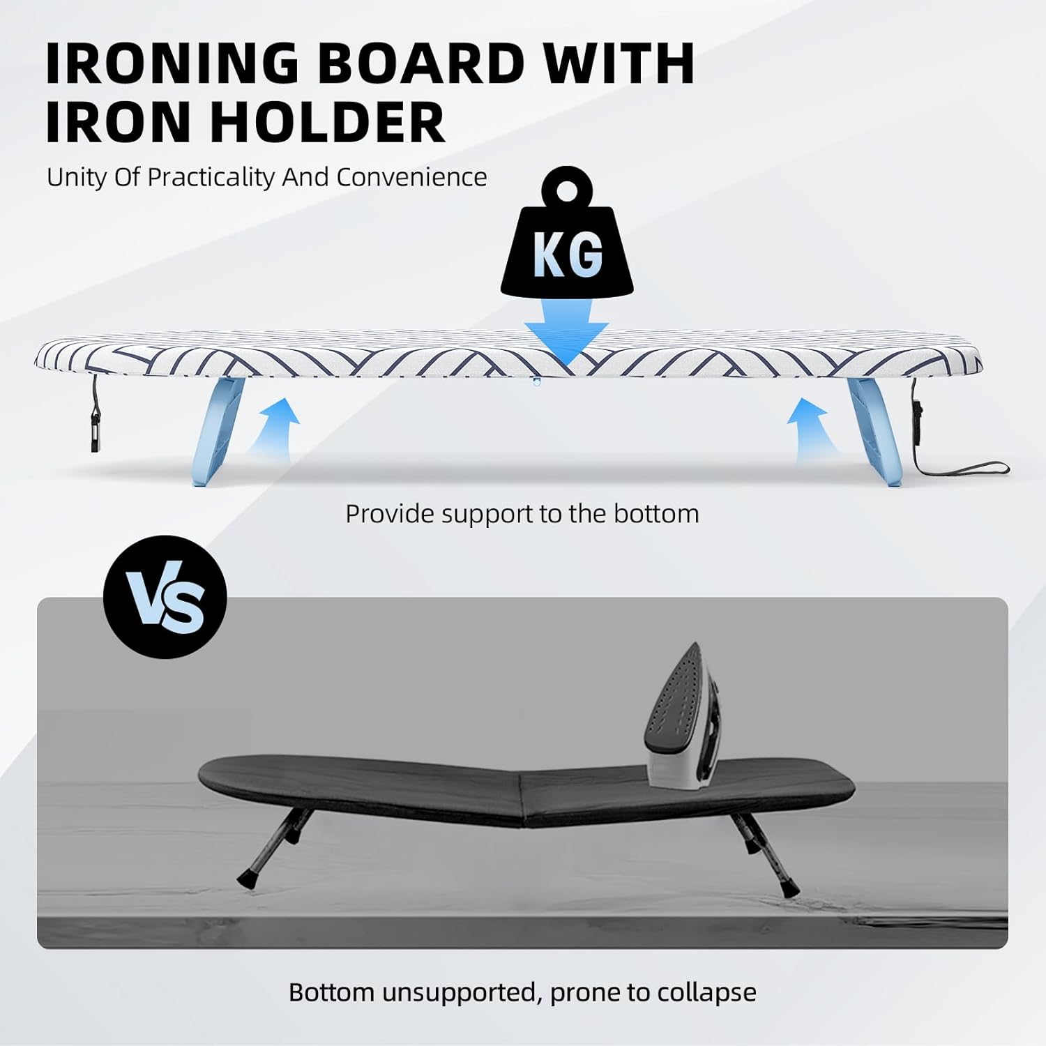 - [Fashionable and Sturdy] With anti-slip feet and safety lock, the small foldable table top iron board provides amazing stability during ironing. In addition, the unique feet design brings a modern and fashionable appearance for our mini ironing board.