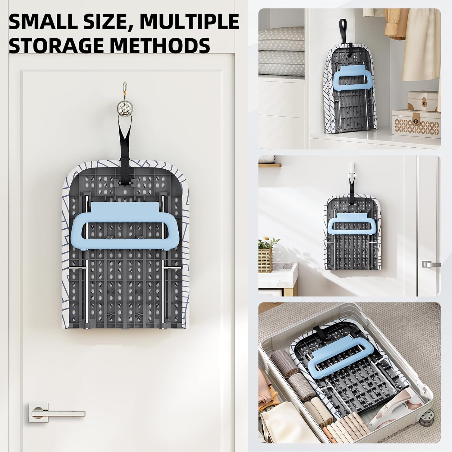 - [Easy to store]The table top ironing board comes with a handy hanging rope, allowing the tabletop ironing board small to be hung in a closet or hooks mounted on wall and door, making the storage much easier.