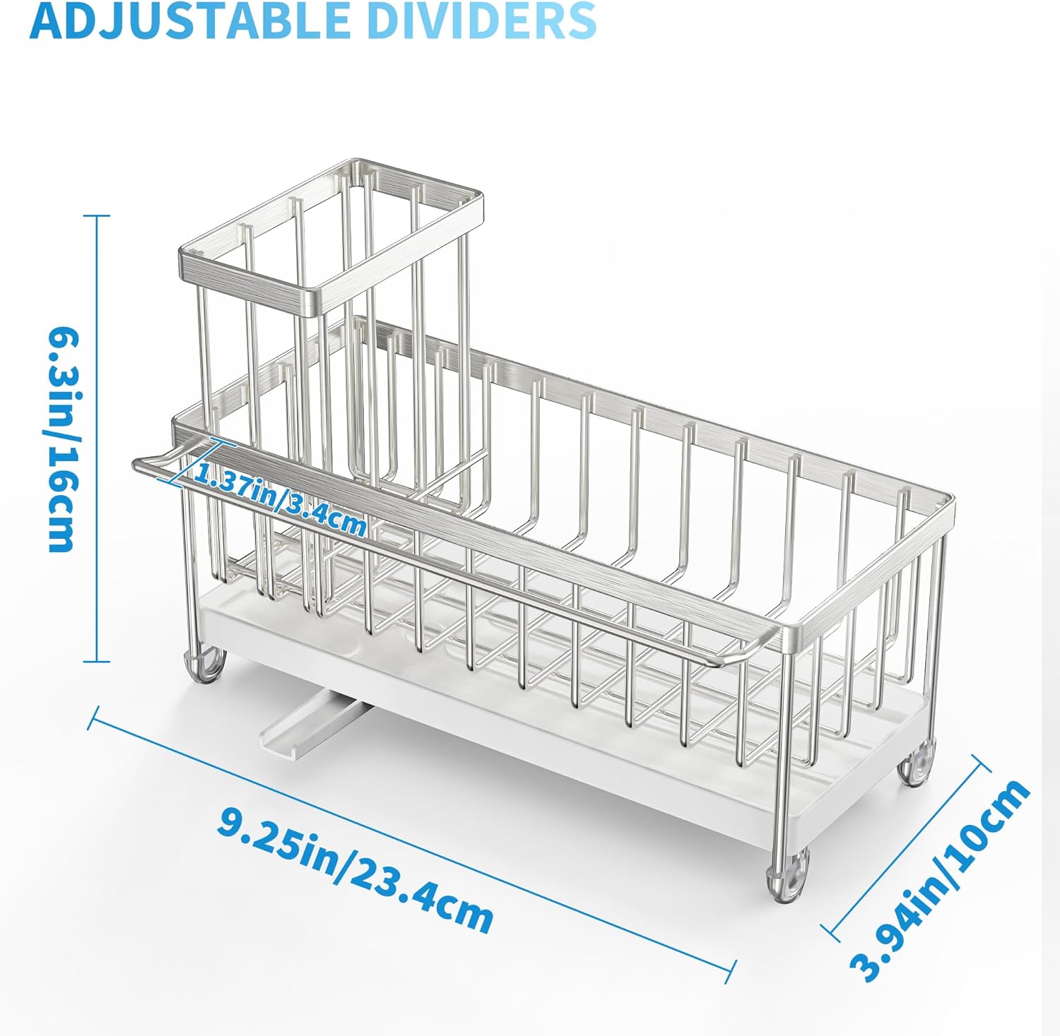 - Cisily Stainless Steel Sponge Holder for Kitchen Sink with Towel Rack, Sink Caddy with Kitchen High Brush Holder, Organzier Rustproof 304 Stainless Steel Dish Organizer Divider, Soap Dispenser Storage