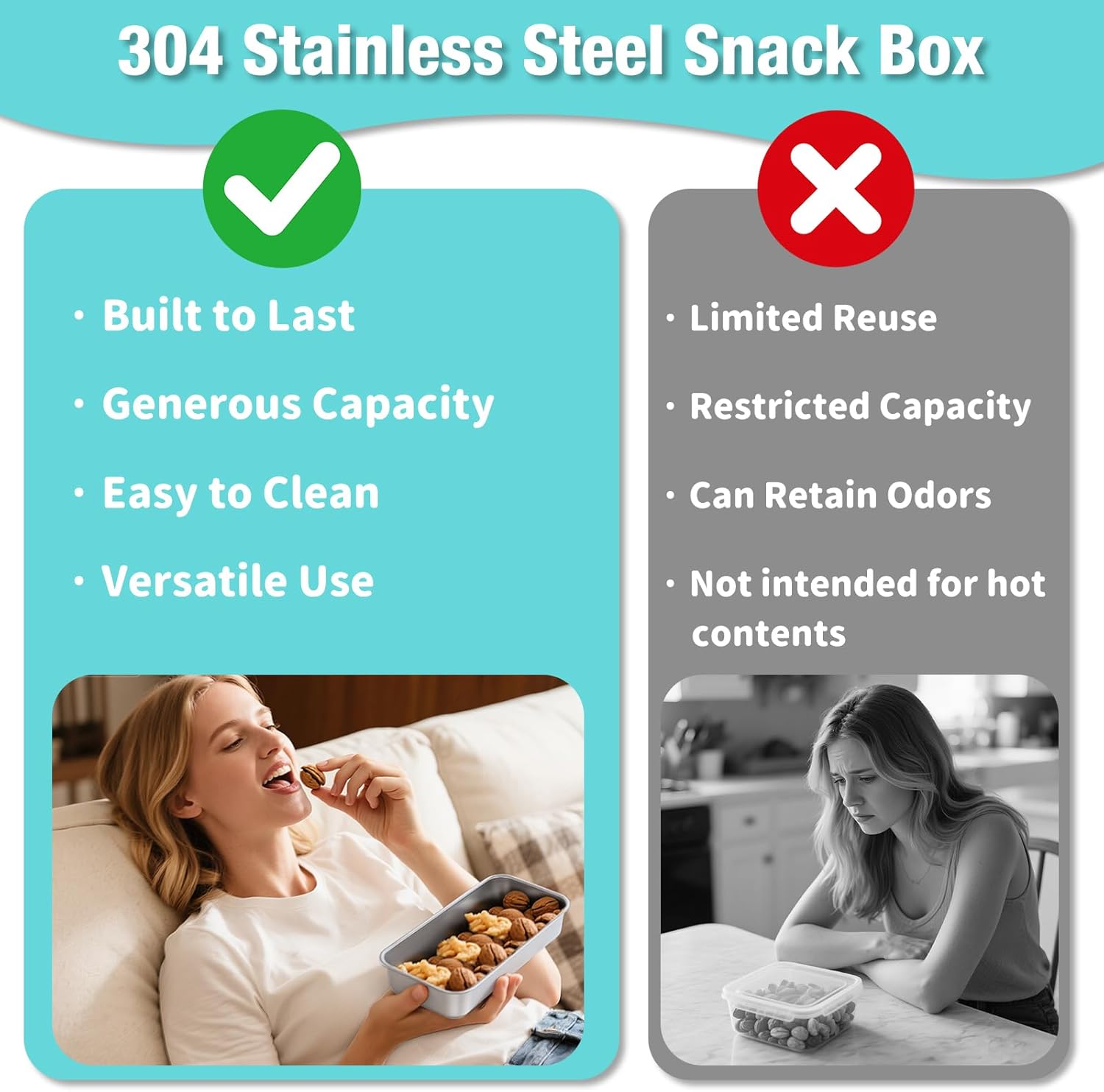 - Smarter Compartments: Keep flavors fresh and separated. The divided design prevents sogginess and flavor transfer between foods like fruits, nuts, and dips—ideal for bento-style lunches