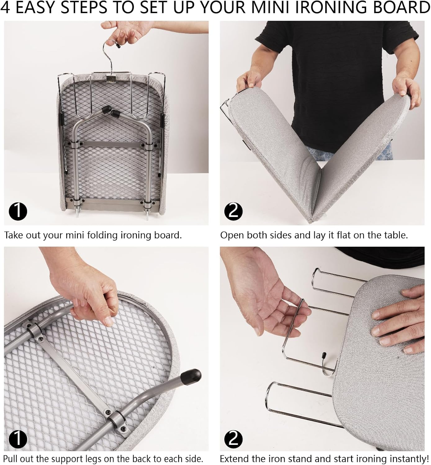- 【Space-Saving & Ready to Use】This compact ironing board opens in seconds—no tricky slots or awkward locking mechanisms. Just unfold and start ironing. Stores almost anywhere, perfect for closets, behind doors, or under beds