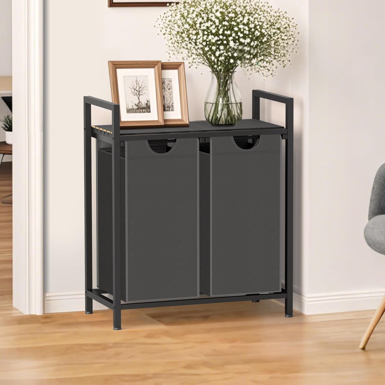 Laundry Hamper, Laundry Sorter with 2 Pull-Out Removable Oxford Fabric Bags Cloth Laundry Basket 2 x 10 Gallons (Grey and Charcoal Black)