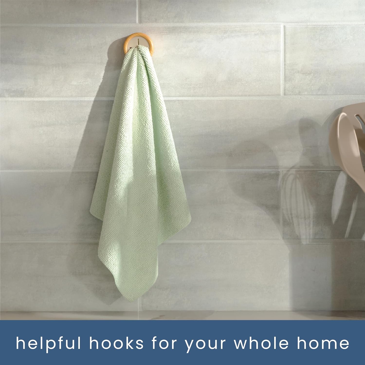 - Keep the kitchen organized with adhesive hooks for hanging hand or dish towels within easy reach