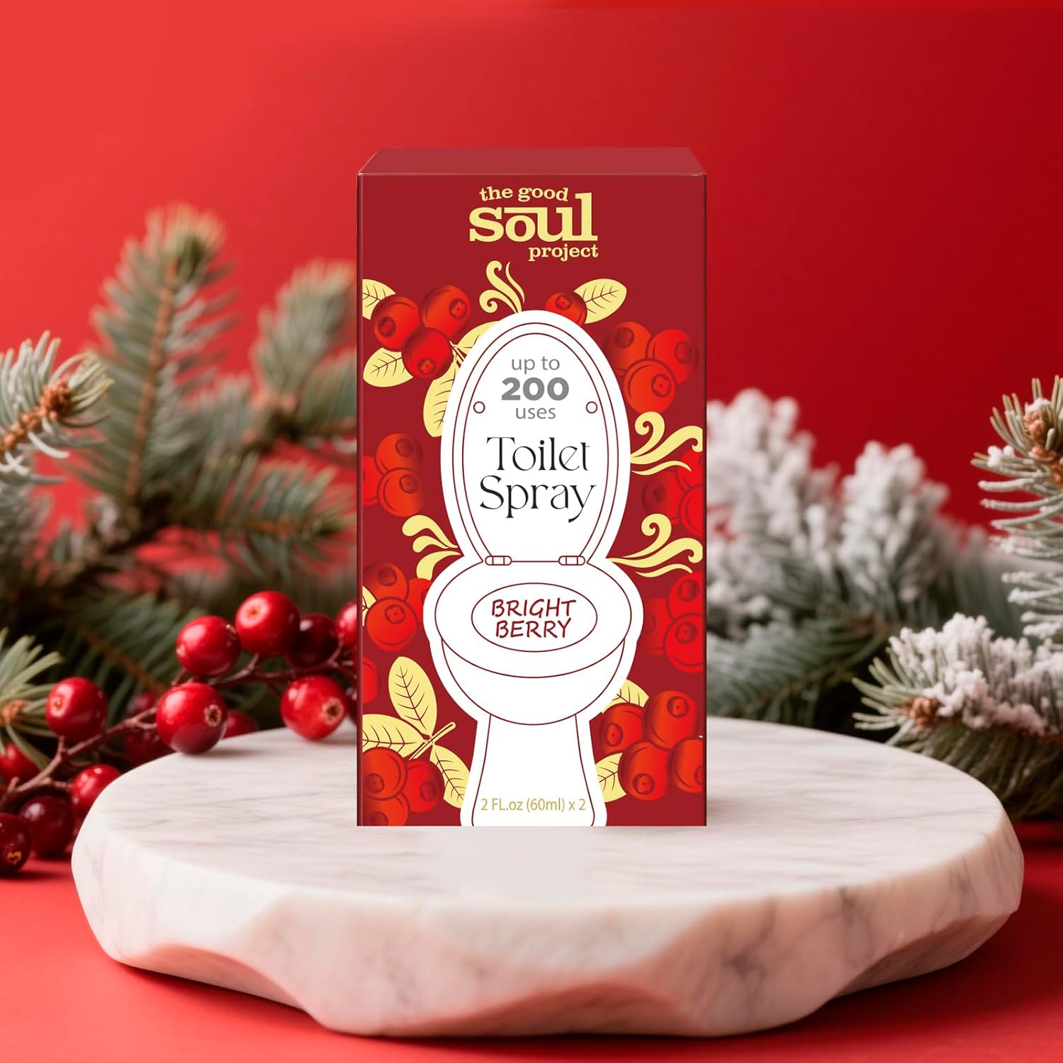 Holiday Toilet Spray, Bright Berry, 4 Fl.Oz, Up to 200 Uses, Travel Essentials, Bathroom Odor Deodorizer, Air Freshener Spray