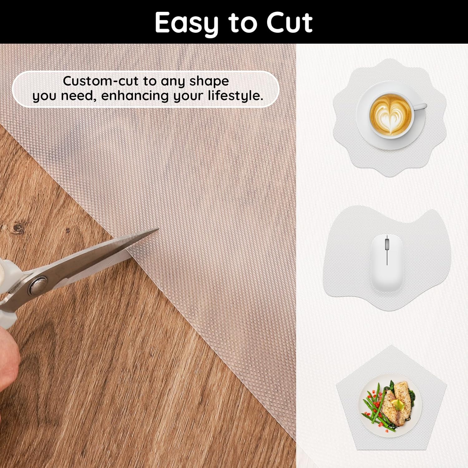 - ăEasy to TrimăSize: 17.72"W x 196.85"L x 0.02"T. The kitchen cabinet liner can be freely cut into different shapes with scissors. Customize it to fit unique drawer, cabinet, or shelf sizes, making it both practical and neat for your space.
