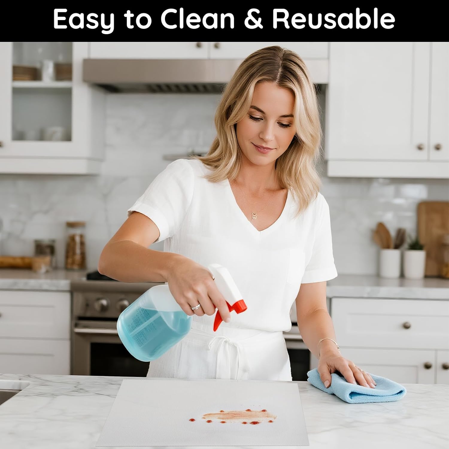 - ăDurable EVA MaterialăThis kitchen shelf liner is made of sturdy EVA material that is tear-resistant, long-lasting, and odorless. It helps protect surfaces from dust, scratches, stains, water, and oil. The non-adhesive design allows easy placement and removal without sticky residue.