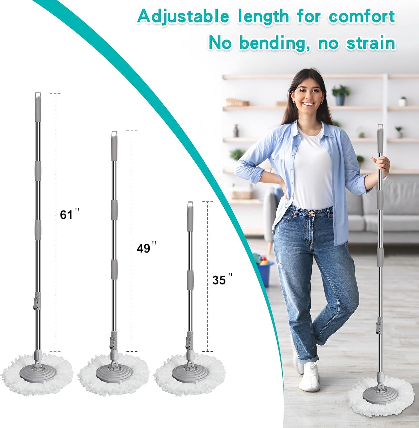 - Durable Spin Mop with Microfiber Mop Heads & 4-Chamber Separation-Built for durability, the system includes 6 washable microfiber mop heads for multi-surface use. The patented 4-chamber design keeps clean and dirty water fully separated, ensuring a truly hygienic clean from start to finish.