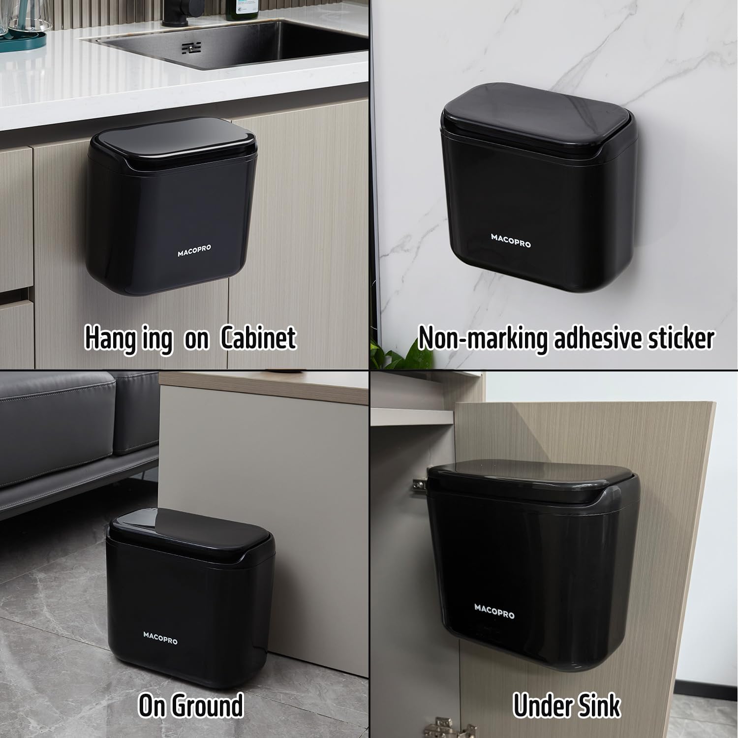 - Kitchen-Specific, Full-Coverage Multi-Form Storage:As a professional kitchen compost bin and food waste bin for kitchen, it can accurately store kitchen waste such as fruit scraps and vegetable peels. With two installation methods of hanging trash can and wall mount trash can, it can be hung on cabinet doors, stuck on kitchen walls, or used as a table top trash can or under sink trash can, adapting to all kitchen scenarios.