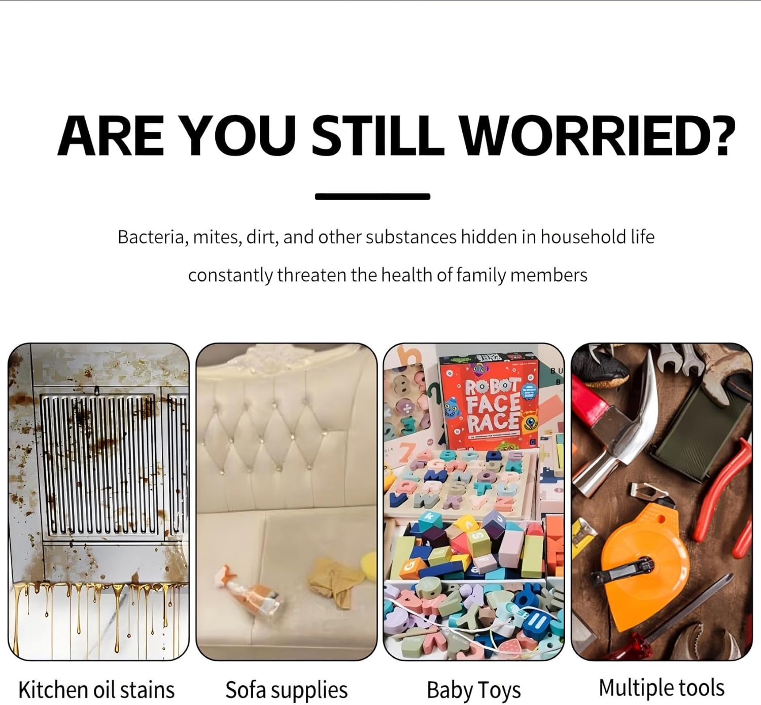 - 【CHEMICAL-FREE & 100% NATURE】Our handheld steam cleaner is free of any harsh chemicals, using only water to generate natural and powerful steam, ensuring a safe and healthy home environment for you and your family. This chemical-free cleaning solution is safe and reliable, perfect for households with children and pets, with no need to worry about harmful residues left on surfaces after cleaning