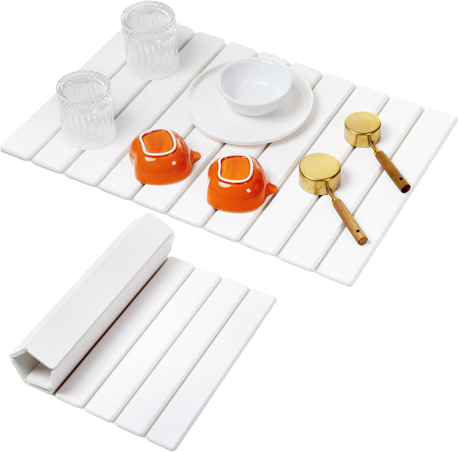 - Stylish Foldable Kitchen Mat - Add both style and function with our foldable quick dry stone mat kitchen. Its sleek texture speeds up drying, organizes utensils, and complements dรฉcor, making dish drying stone a modern essential for every home
