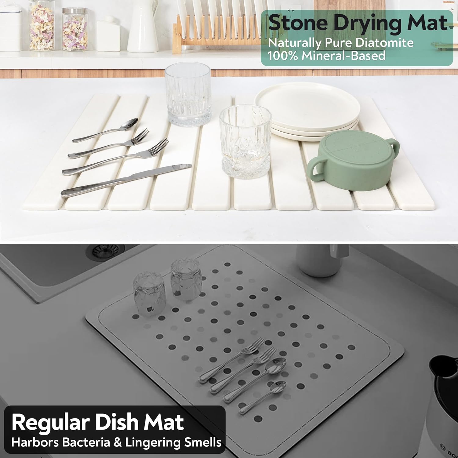 - Revolutionary Stone Drying Mat - Upgrade your kitchen with our drying stone 24x16. Made from food-grade diatomaceous earth, this drying stone for kitchen counter absorbs water instantly, keeping countertops dry, clean, and spotless after every use