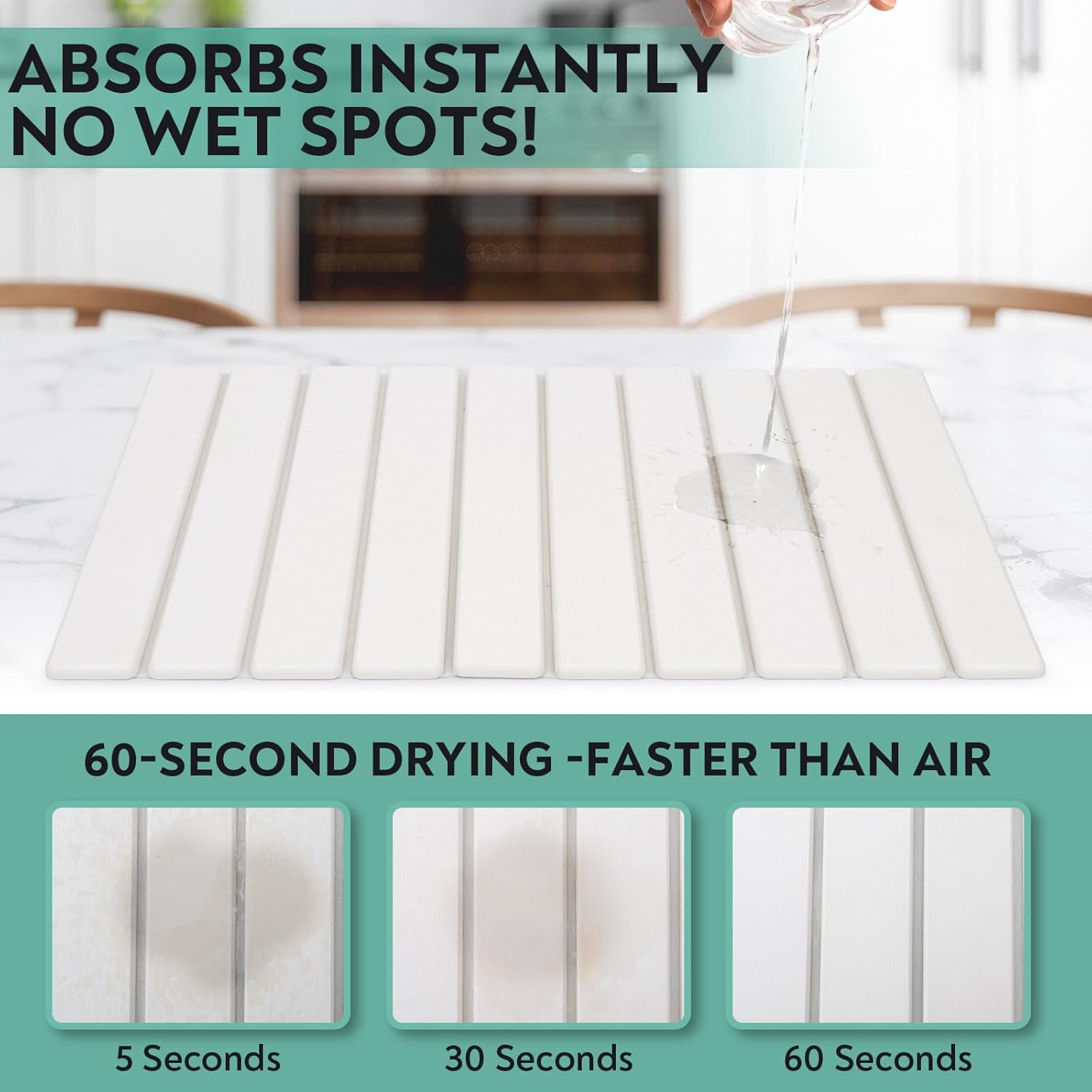 - Quick-Drying Countertop Solution - Experience quick-drying power with our stone mat for kitchen sink large size. The absorbent quick dry stone mat diatomaceous earth surface instantly soaks up water, keeping soggy counters dry while holding multiple dishes and utensils
