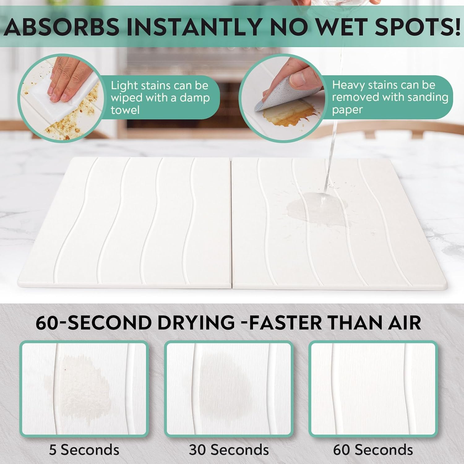 - Revolutionary Stone Drying Mat - Upgrade your kitchen with our drying stone 24x16. Made from food-grade diatomaceous earth, this drying stone for kitchen counter absorbs water instantly, keeping countertops dry, clean, and spotless after every use