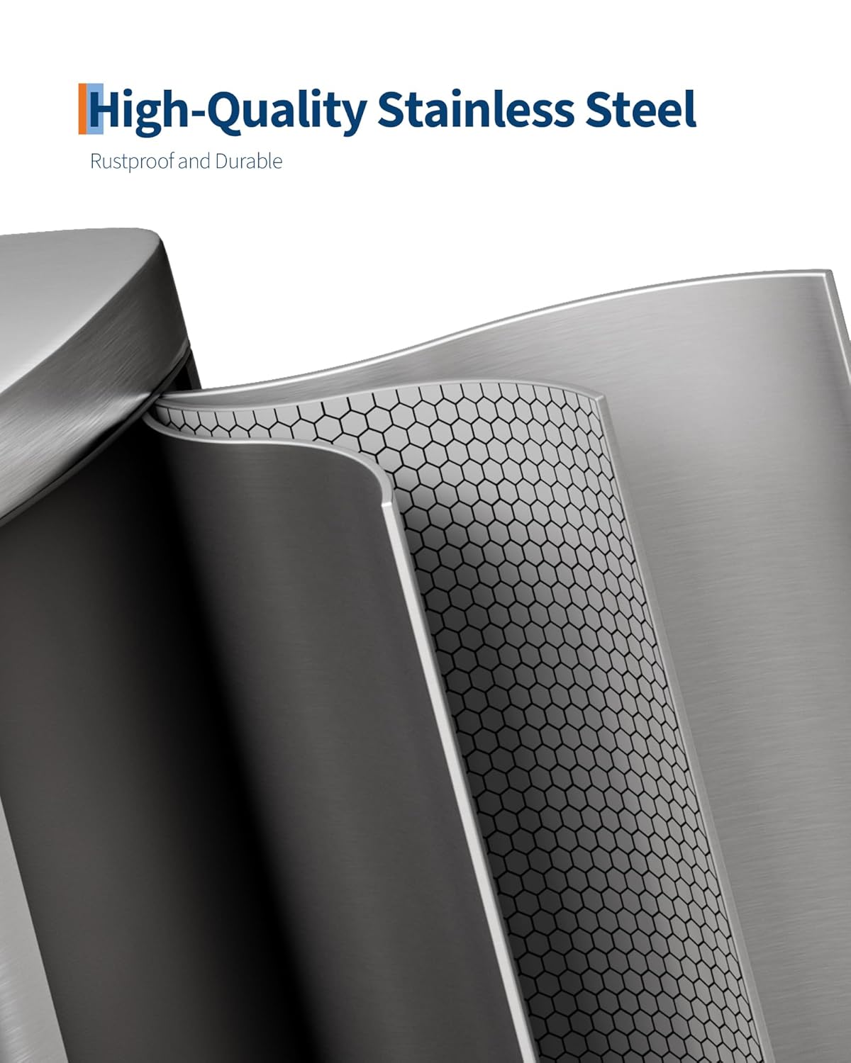 - [HIGH-QUALITY MATERIALS] – The Garvee large trash can with lid is engineered for longevity. Its 410 Garade ferritic stainless-steel shell resists rust and scratches while retaining lasting luster. The polypropylene inner buckets repel stains, odors. The thick ABS lid with stainless overlay withstands dents, stains, odors; the industrial-steel pedal endures 150,000+ steps, and the ABS hinge survives over 300,000 open/close cycles