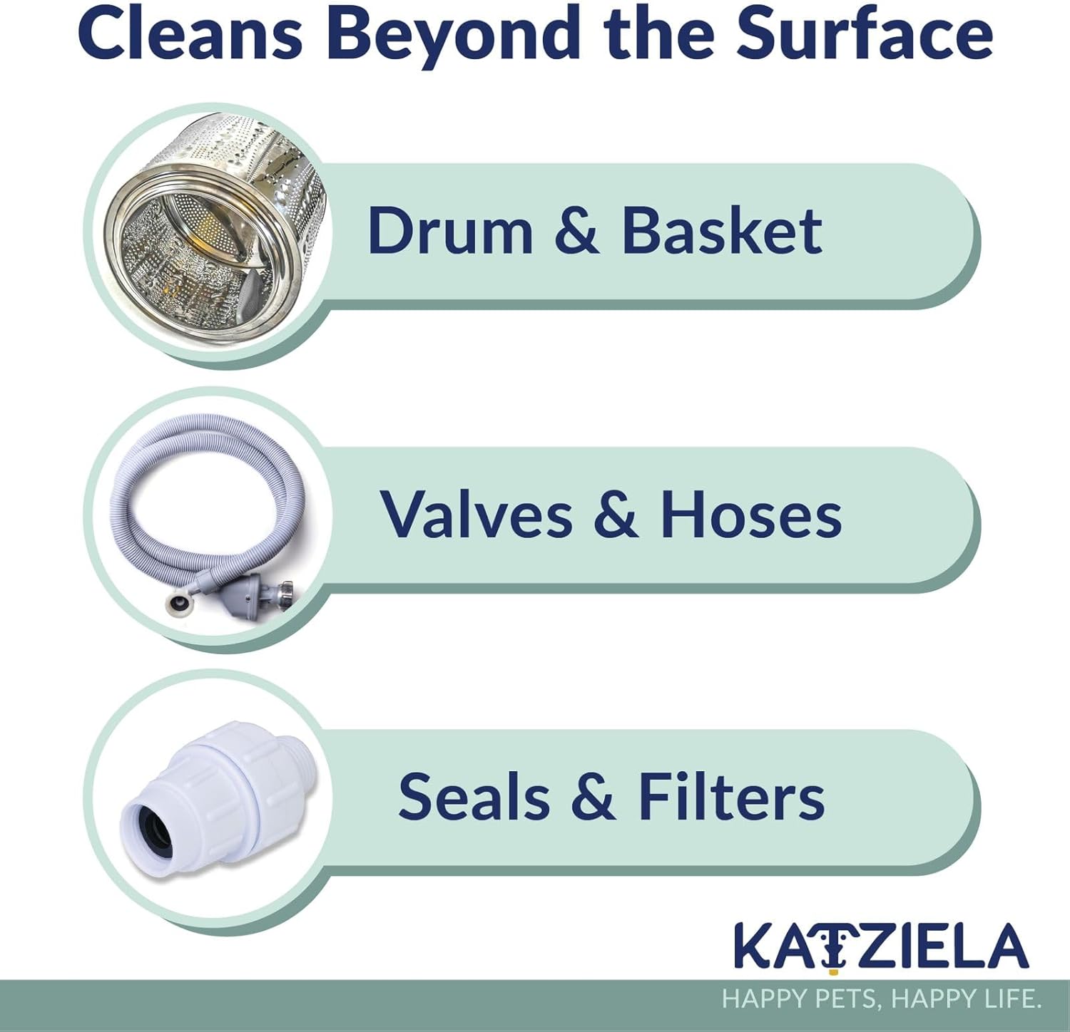 Katziela Washing Machine Cleaner Tablets – 24 Pack (12-Month Supply) – Formulated for Pet Owners – Helps Loosen Pet Hair & Eliminate Odors – Fragrance-Free, Enzyme-Based – Septic Safe & HE Compatible