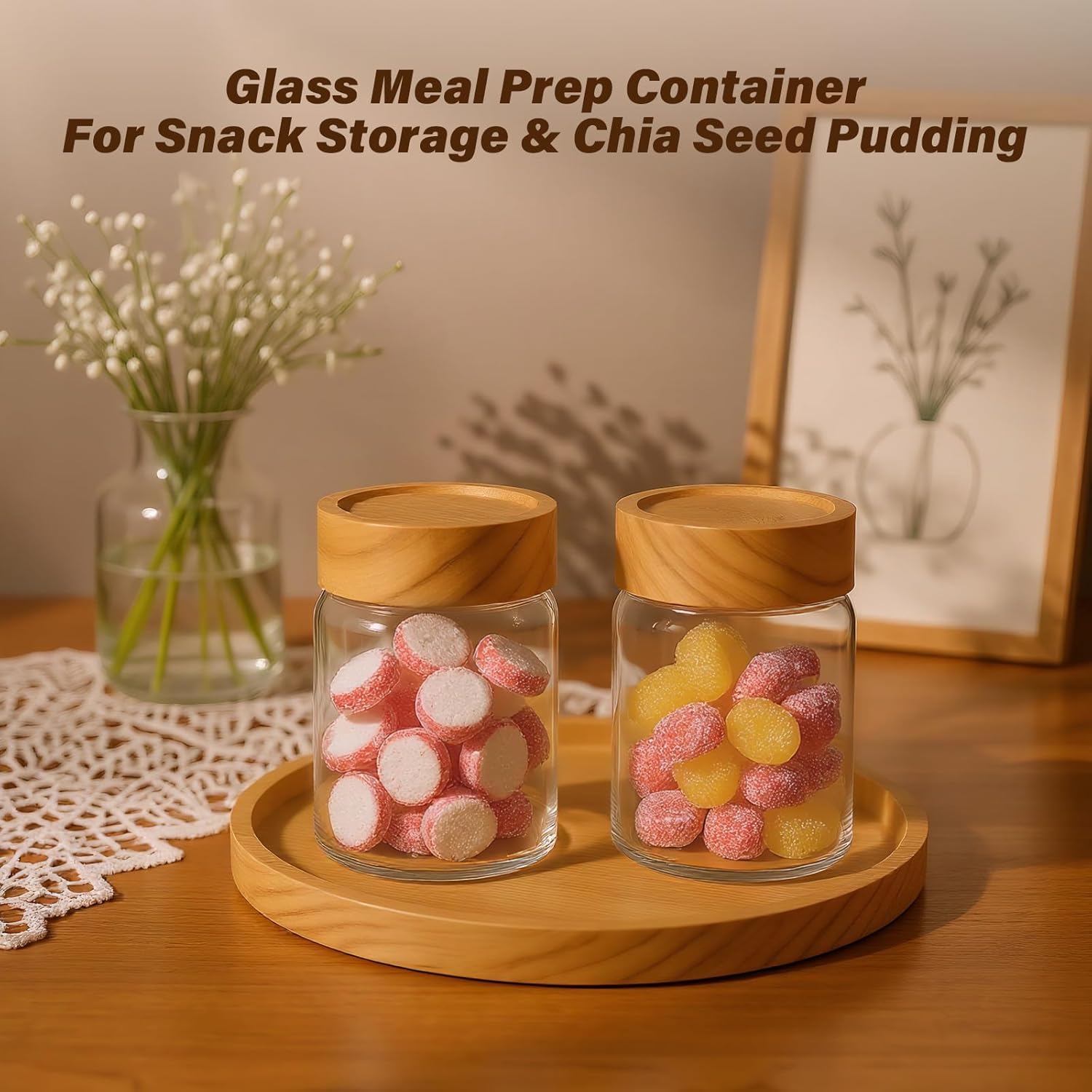 - 【2-Piece Glass Mason Jars with Acacia Wood Lids】 – This food storage container set includes 6 durable, clear glass jars with natural acacia wood airtight lids, designed for kitchen organization