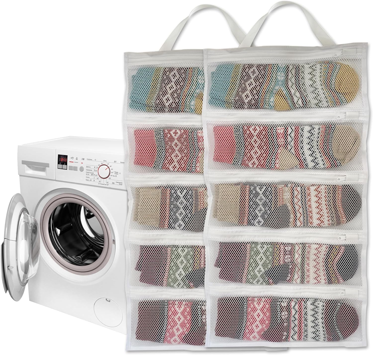 Mesh laundry bags for washing machine, can wash 10 pairs of socks, maintain shape, keep one pair,Laundry room organization suitable for socks and small items, 2pcs (Large)
