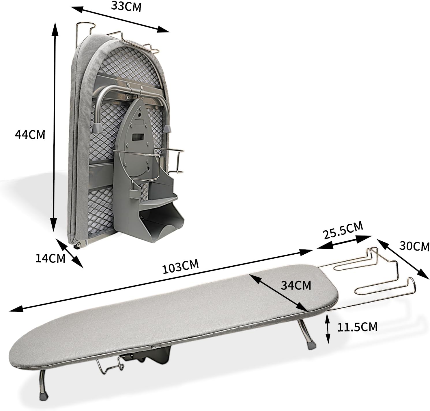 Tabletop Ironing Board Folding with Iron Holder and Iron Rest, Portable Space Saving Small Metal Ironing Board (Gray)