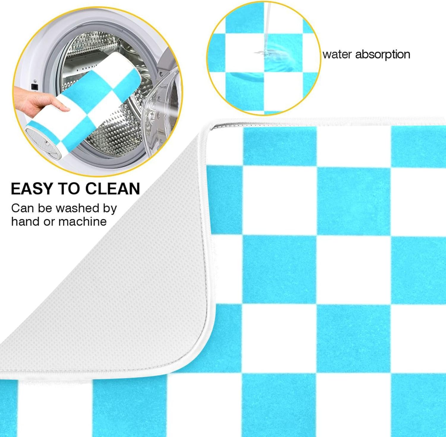 Turquoise Chessboard Dish Drying Mat for Kitchen Countertop 16x18 Teal Plaid Checkered Rectangle Small Drying Mat Reusable Quick Dry Dish Sink Absorbent Mats Easy Clean Decorative Home Essentials