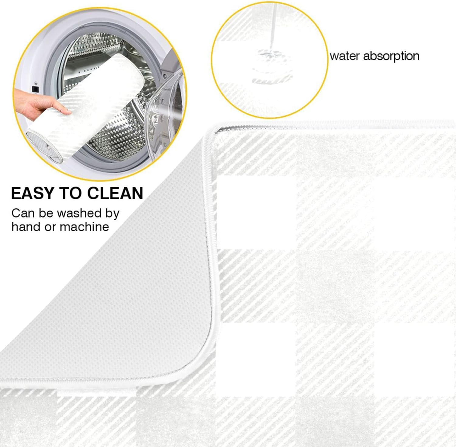 Buffalo Plaid Gray White Dish Drying Mat for Kitchen Countertop 16x18 Chessboard Rectangle Small Drying Mat Reusable Quick Dry Dish Sink Absorbent Mats Dishwasher Easy Clean Decorative Home Essentials