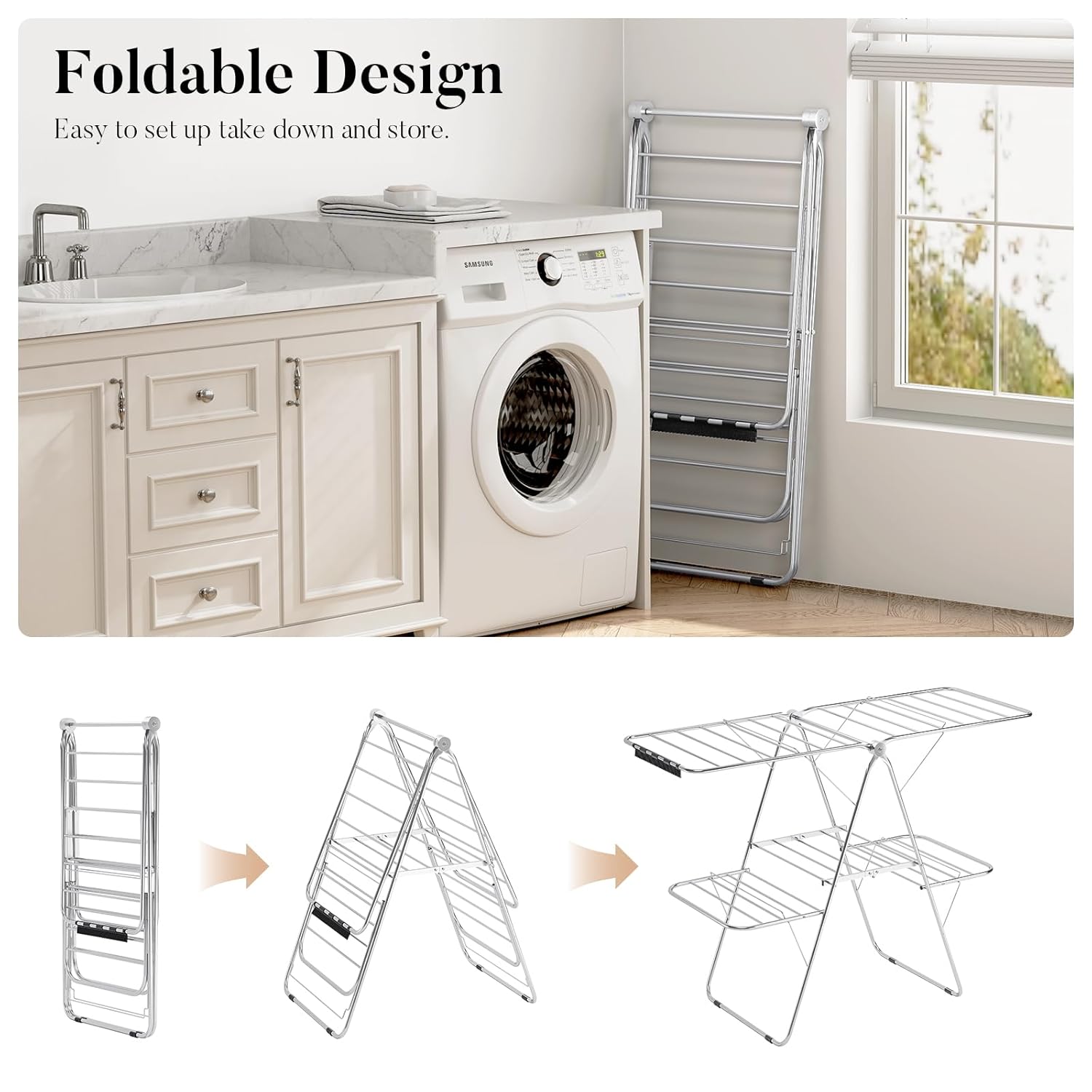 - Stainless Steel & Metal Connectors: This clothes drying rack is mostly made of stainless steel, and the connecting parts are upgraded to metal too. That makes the whole thing way more durable.