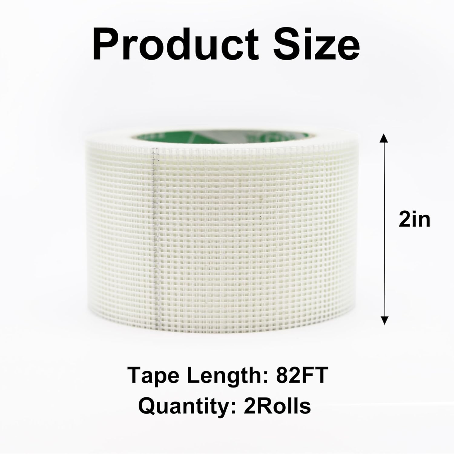 2 Rolls Drywall Repair Joint Tape, 2 Inch x 164FT, Self-Adhesive Drywall Mesh Patch for Crack Repair (2)