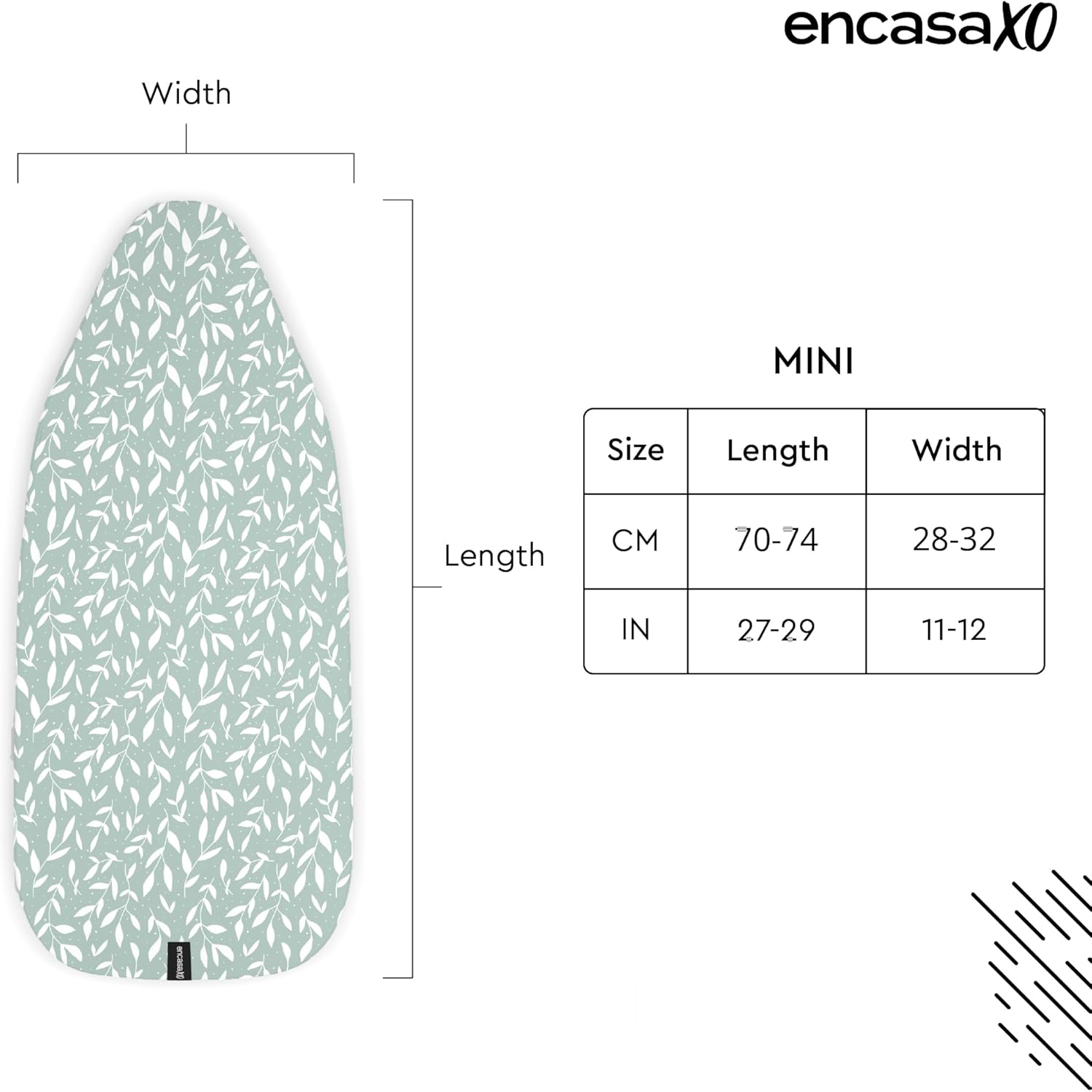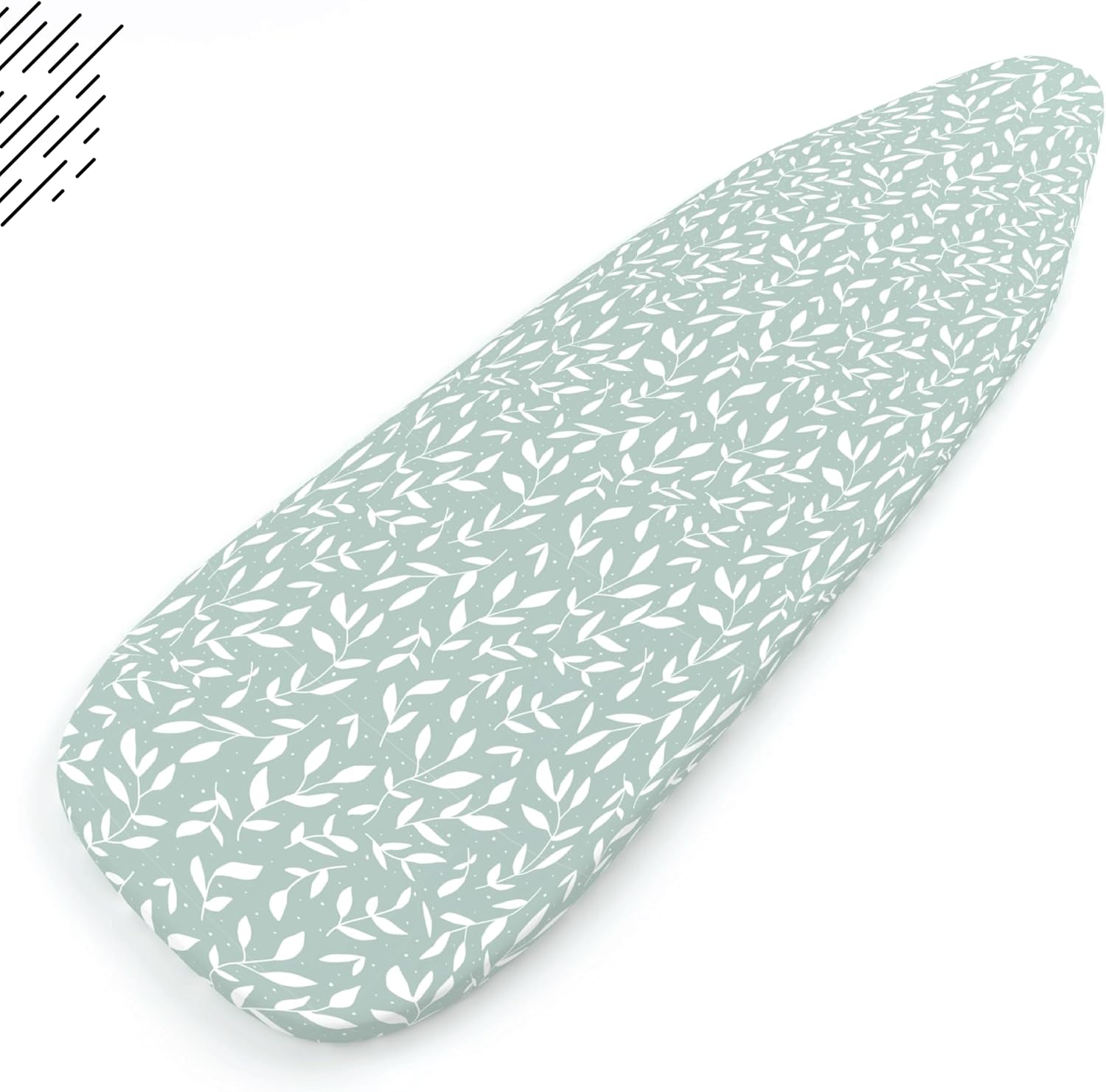 Encasa XO Ironing Board Cover and Pad 28"x12" - Thick 3mm Felt Padding, Drawstring Tightening & Lock, Easy Fit, Scorch & Stain Resistant, Fits Mini Ironing Board - Green Leaflet