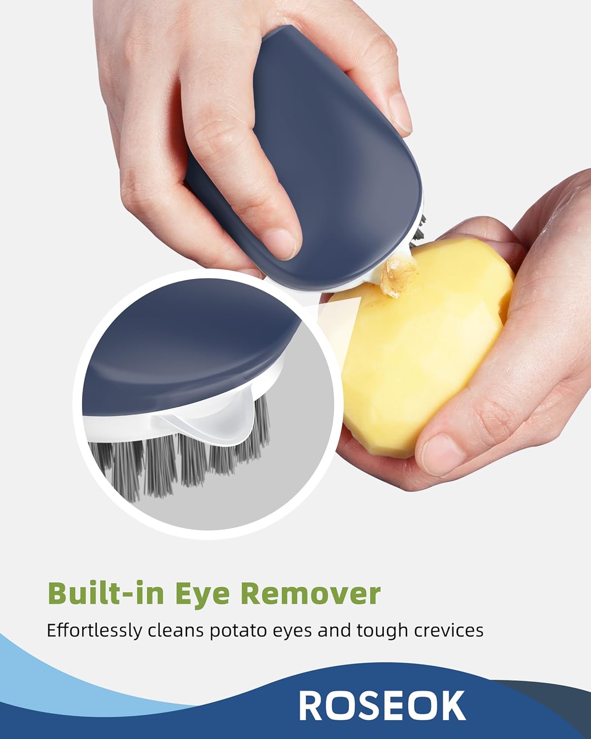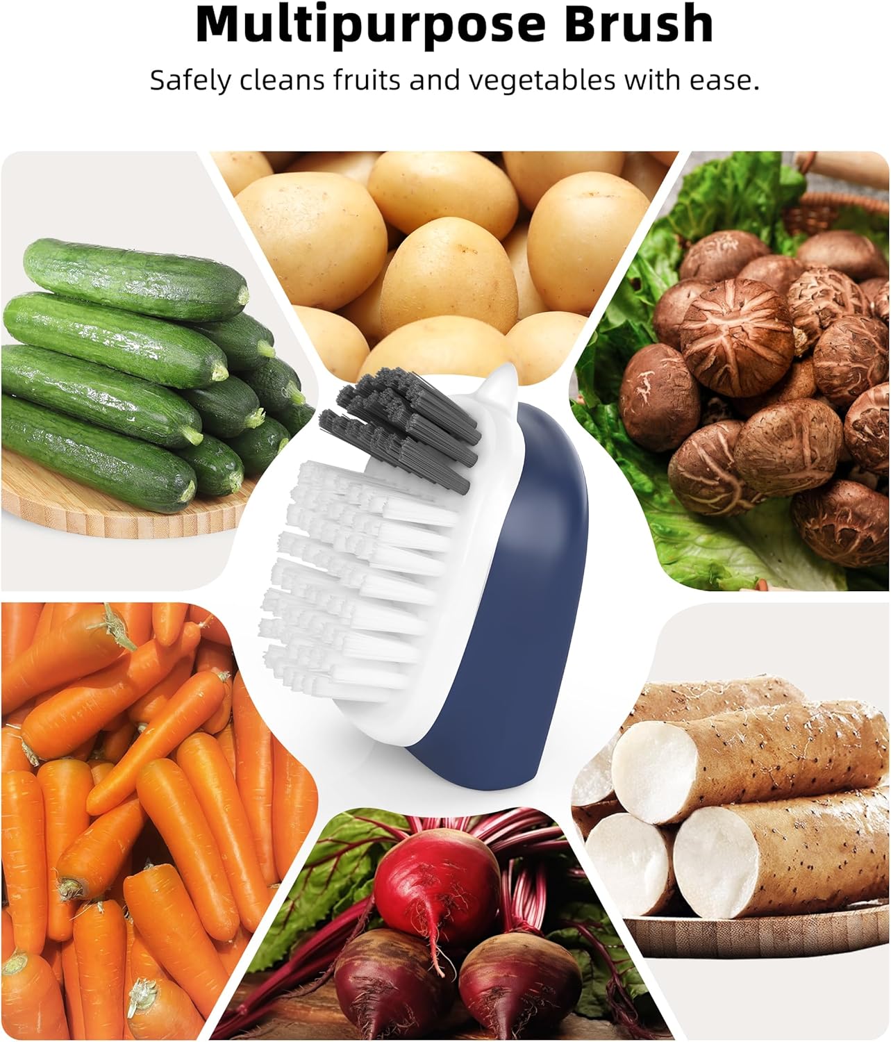 Potato Scrubber and Veggie Brush, Self-Standing Kitchen Brush for Fruit and Vegetable Cleaning, Navy Blue, 2 Pack