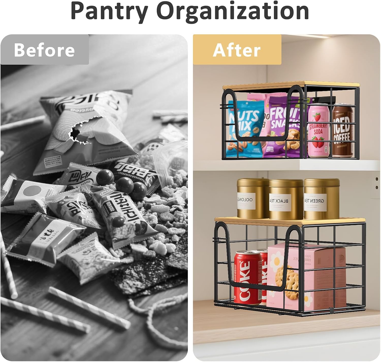 - Space Saving: The front features a wide opening, making item access even more convenient. Its stackable design maximizes vertical space utilization. The top is paired with a bamboo lid that not only enhances the overall aesthetic but also serves as additional storage space. Whether used for trash bag storage or general organization, it keeps kitchens/cabinets neat and organized, effortlessly achieving efficient space utilization