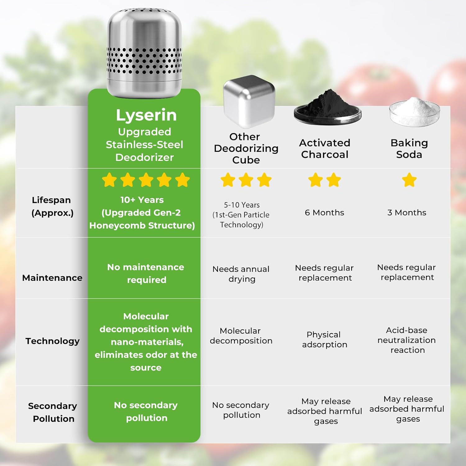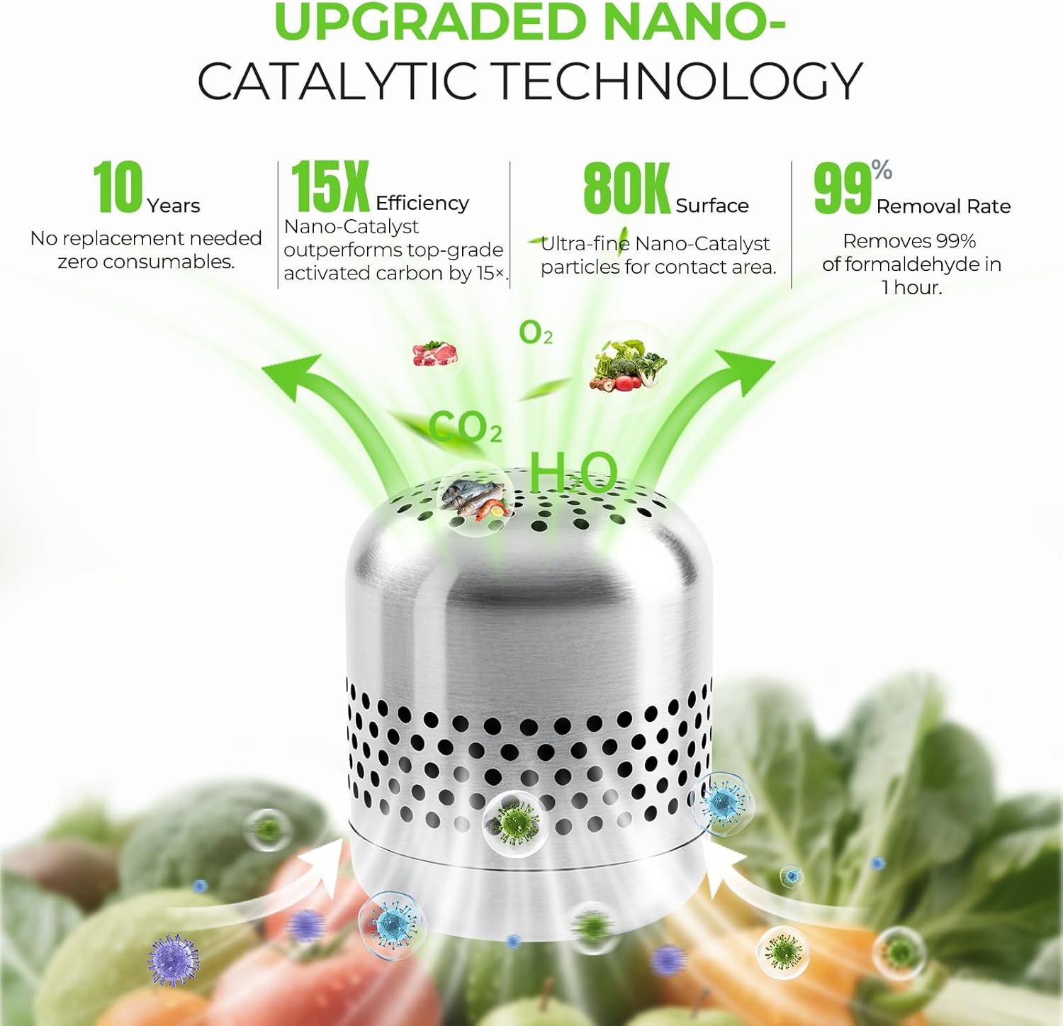- ๐๐๐ฏ๐๐ง๐๐๐ ๐๐๐ง๐จ-๐๐๐ญ๐๐ฅ๐ฒ๐ญ๐ข๐ - No more lingering fridge odors. Our refrigerator deodorizer features an advanced composite nano-catalyst that breaks down harmful VOCsโlike formaldehyde, benzene, and tolueneโinto harmless substances.