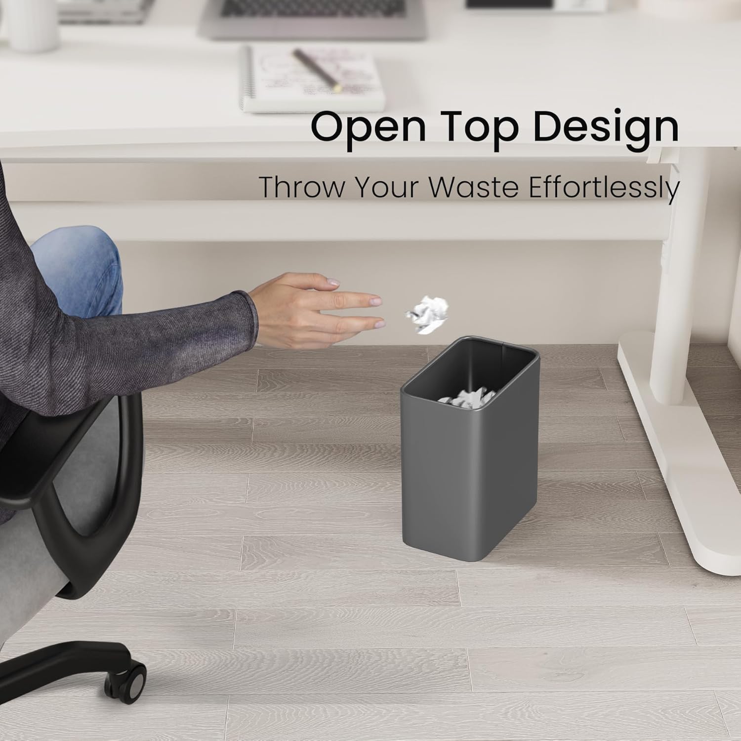 - No Lid Design: The open top with big horizontal diameter allows you to throw your waste effortlessly without touching the gray small garbage can. Even if you throw waste from a distance, it can go into the garbage can unobstructed