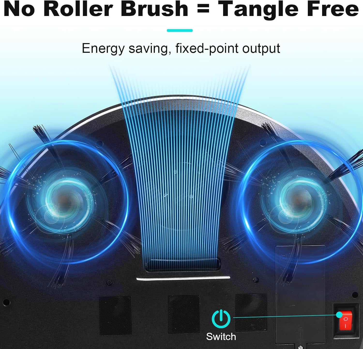 - [3 in 1 Robot Vacuum and Mop and Sweeping]This Robot Vacuum Cleaner can easily remove stubborn debris such as beans, melon shells, and cookie crumbs with tornado level suction, sweeping away hair and dust in one go, bidding farewell to manual secondary cleaning.