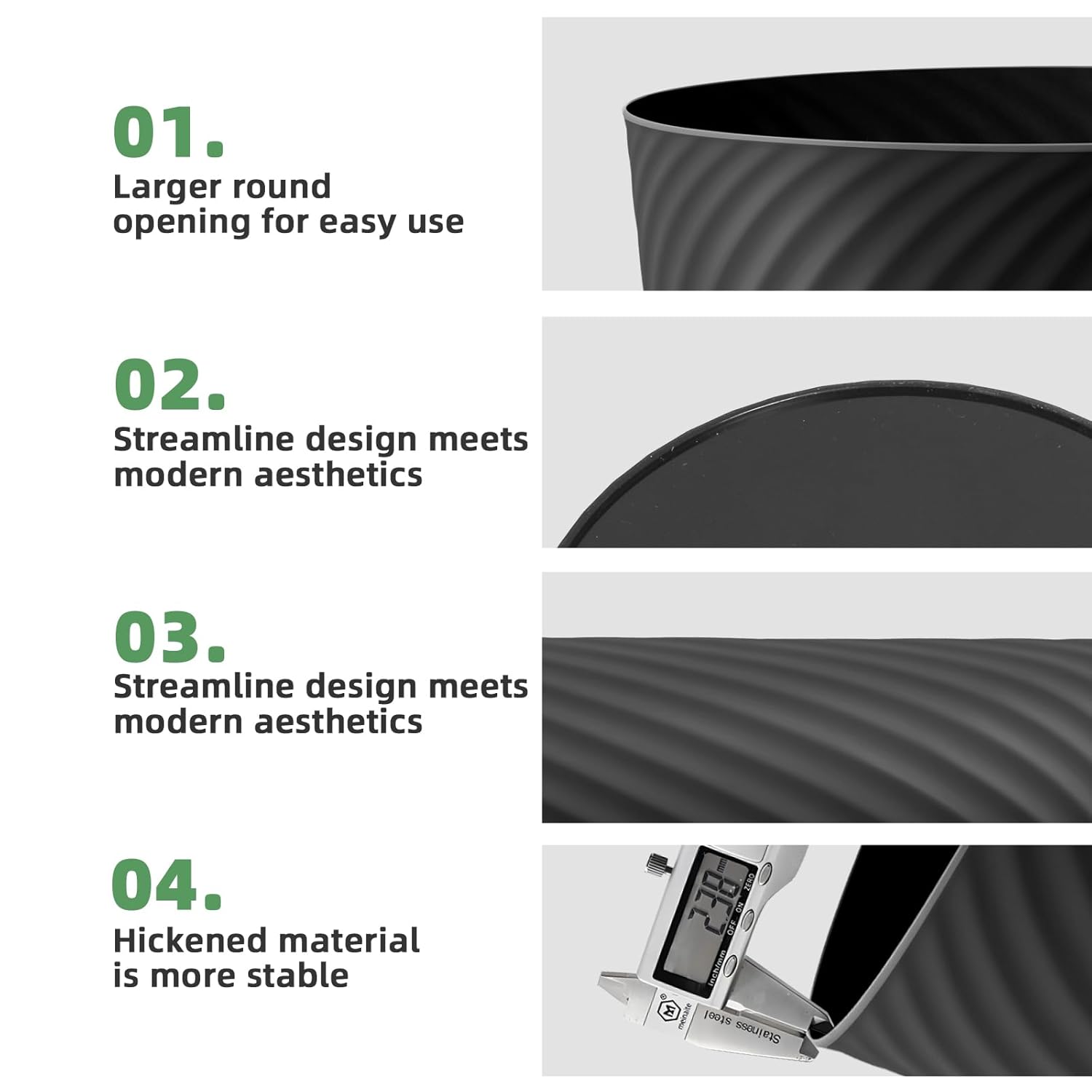 - 💪【Sturdy & Multipurpose】 Built to last with impact-resistant plastic and a raised anti-slip base to reduce wear. Beyond trash, use them as storage bins for toys, laundry, or cleaning supplies—or even as a mini flower pot! Effortlessly wipes clean for hygiene.