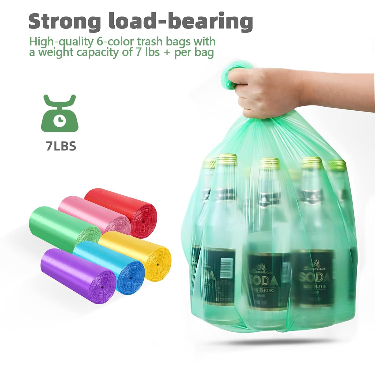 - 🛍️【Bonus 6 Extra-Thick Garbage Bags】Each set includes 6 premium garbage bags in assorted colors—tear-resistant and leakproof, with a 7+ lb load capacity. No more flimsy bags! Ideal for disposing of tissues, wipes, or light household waste without worry.