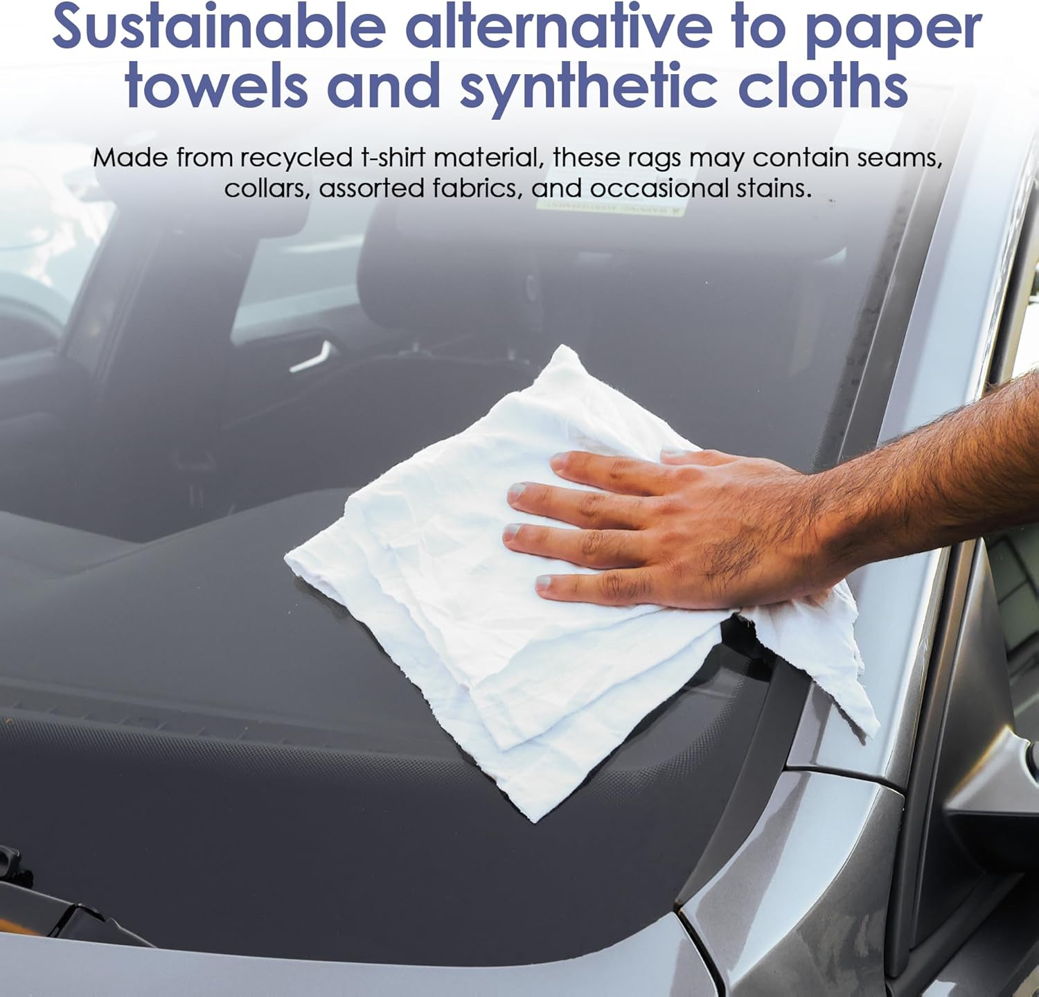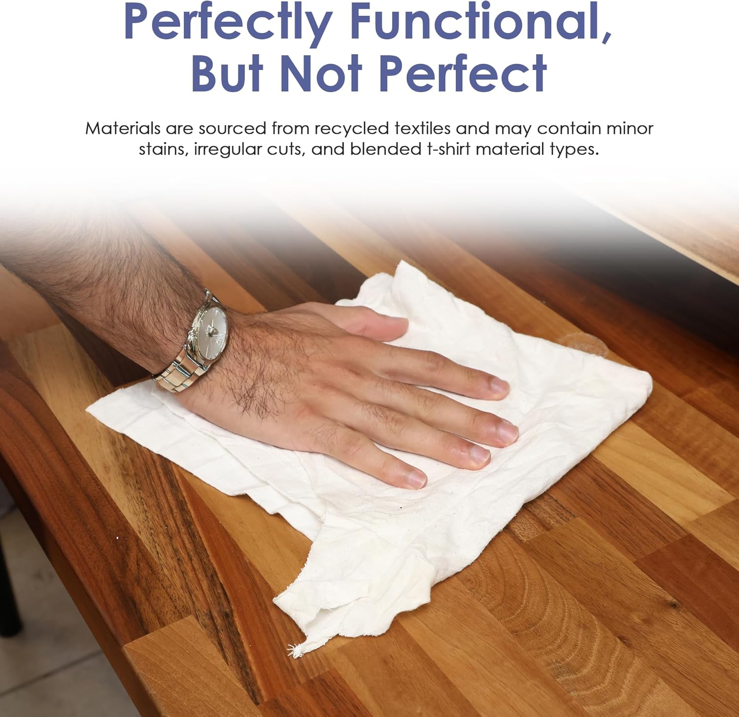 - Eco-Friendly Cotton Blend β Made from pre-consumer recycled cotton blend t-shirt material, these rags offer a sustainable, high-performance alternative to disposable paper towels and synthetic cloths.