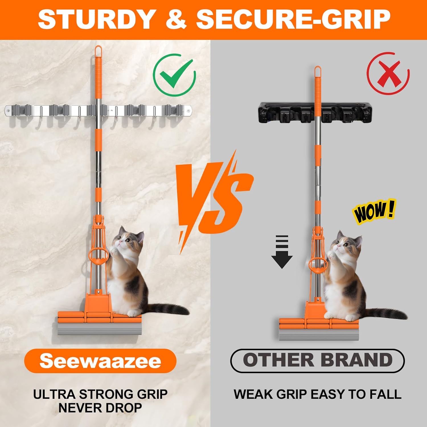 - 【Superior Space Organization & Versatility】Transform cluttered spaces instantly with this mop and broom organizer wall hanging. This wall mount broom and mop holder efficiently stores brooms, mops, and various tools using its innovative broom hanger wall mount design. It functions perfectly as a broom organizer wall mount, mop broom holder wall mounted, or closet broom holder wall mount. Stop tripping over items! Free up valuable floor space in your garage, laundry room, utility closet, or kitchen. This broom rack wall mount and mop hanger wall mount solution keeps your broom and mop holder neatly arranged. It's the ultimate wall hanger for brooms and mops.