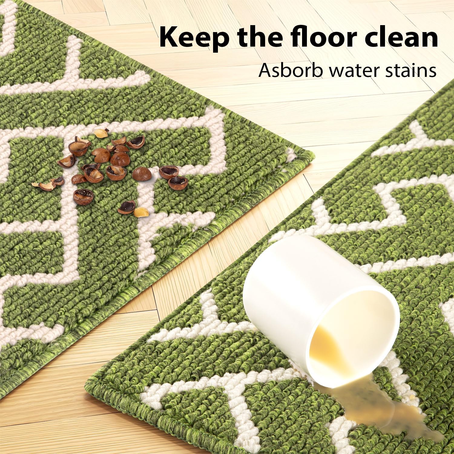 hicorfe Indoor Doormat,Front Back Door Mat Rubber Backing Non Slip Door Mats 20"x59" Absorbent Resist Dirt Entrance Doormat Inside Floor Mats for Entryway Washable Low-Profile(Sage Green)