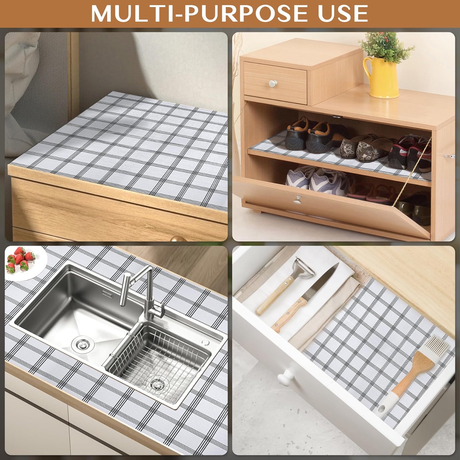 - Versatile Use for Whole Home: A versatile non-adhesive liner for countless applications. Use it to organize and line kitchen shelves, cabinet bottoms, bathroom drawers, utility cabinets, dresser drawers and book shelves. The perfect solution for home organization and shelf protection.