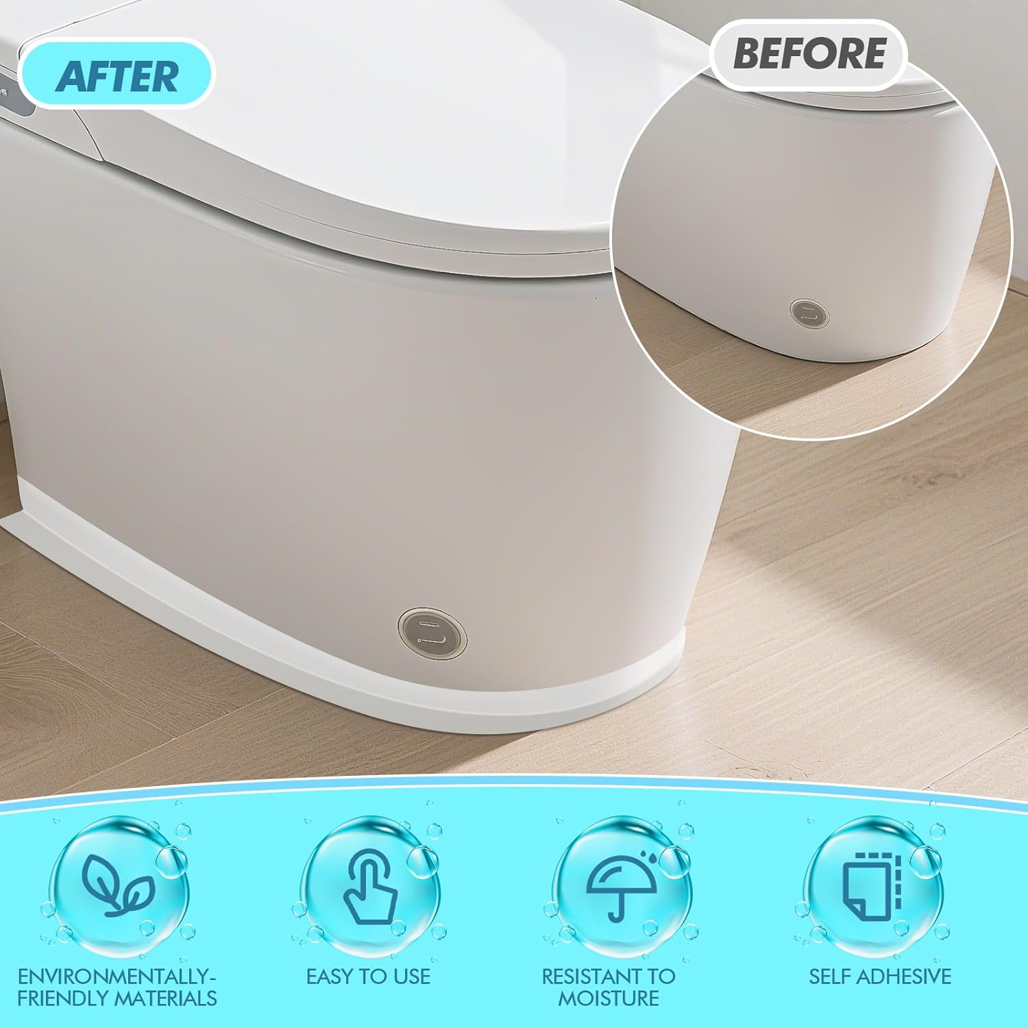 - Wide Applications: this white caulk tape are suitable for tubs, toilets, corners, bathrooms, kitchen countertops, basins, sinks and gas cooktops, keeping your house clean and tidy; The peel and stick caulk strip works on diverse surfaces like tile, glass, and marble for a seamless look
