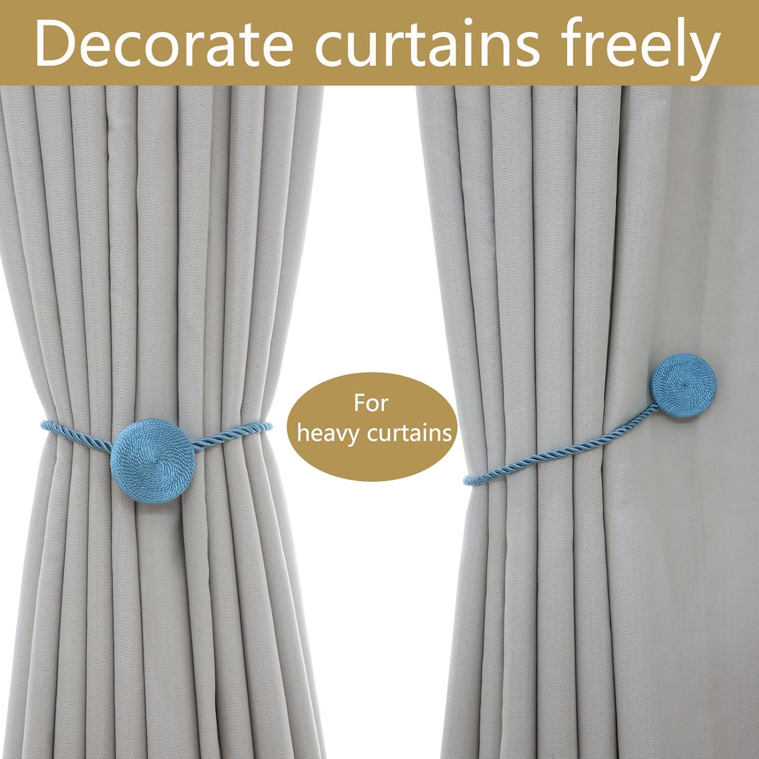 - π― Versatile Styling Anywhere: Versatile for Any Room & Curtain: These magnetic curtain tiebacks perfect for thick blackout drapes or sheer curtains, used fully tied or half-tied. Perfect for living rooms, bedrooms, offices & bathrooms. European braided design blends with farmhouse, modern, or classic decor. Holds thickest curtains yet gentle on fabrics.