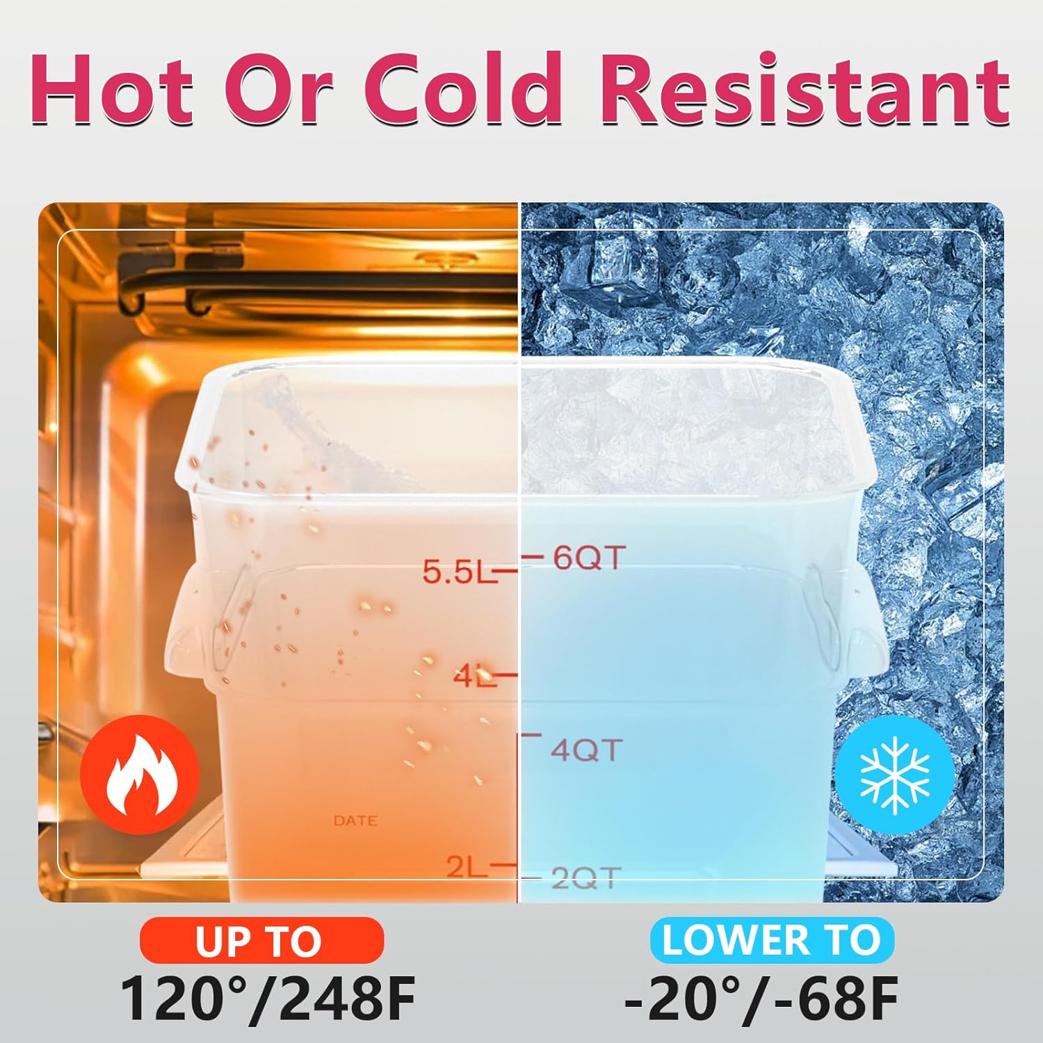 6 Pack 6 Quart Square Clear Food Storage Containers with Lids Cereal Containers Storage Airtight Food Storage Containers for Restaurant Kitchen Home