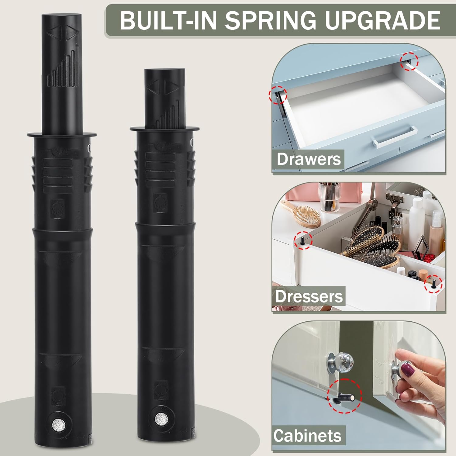 - Push to Open Latches: no knobs or handles are needed; Built in spring loaded plunger, a gentle push on the door or drawer releases the magnetic lock, and closing it automatically re engages the latch; Ideal for minimalist designs, or for cabinets or drawers where handles would get in the way