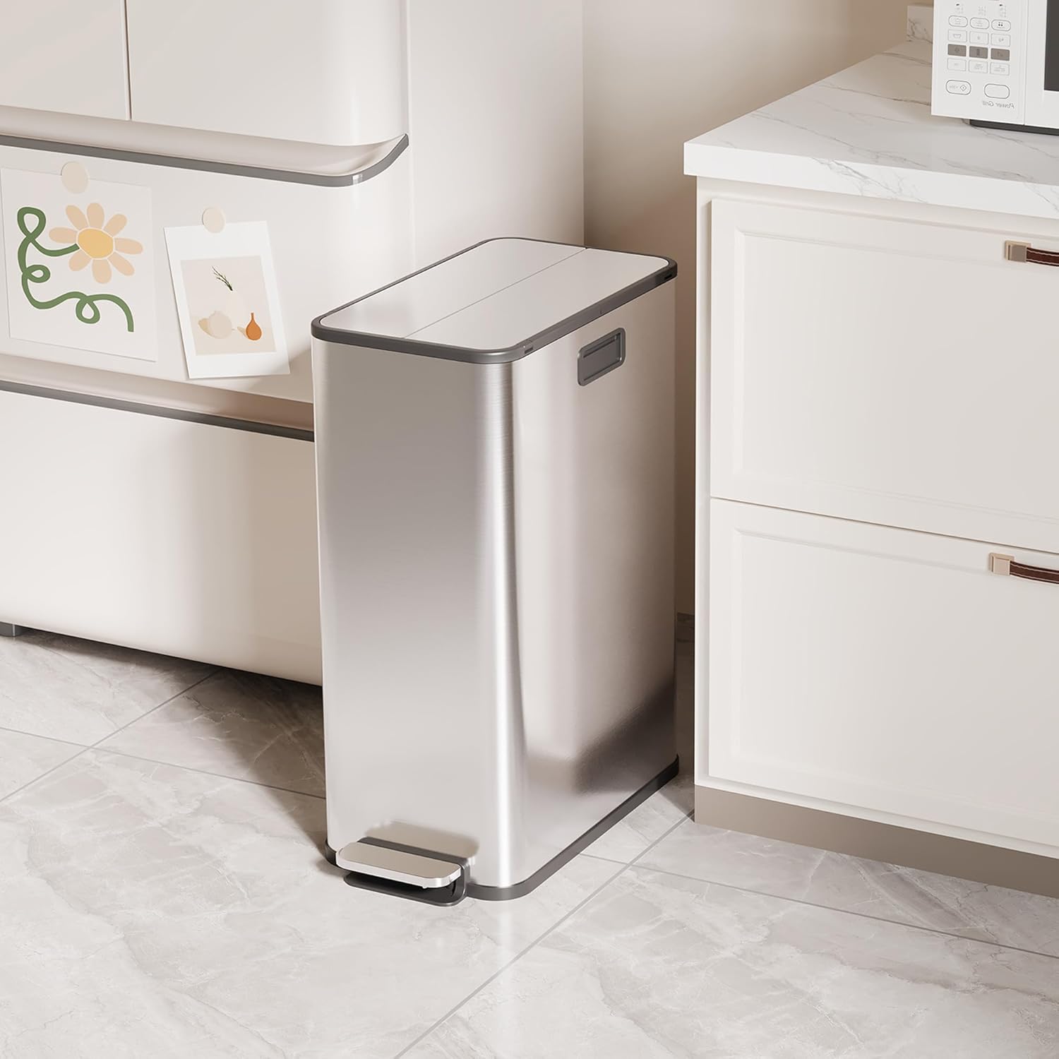 - Sleek and Easy to Maintain: With an anti-fingerprint stainless steel finish, this trash bin adds a modern touch to your kitchen while making maintenance effortless—keeping your space looking clean and pristine.