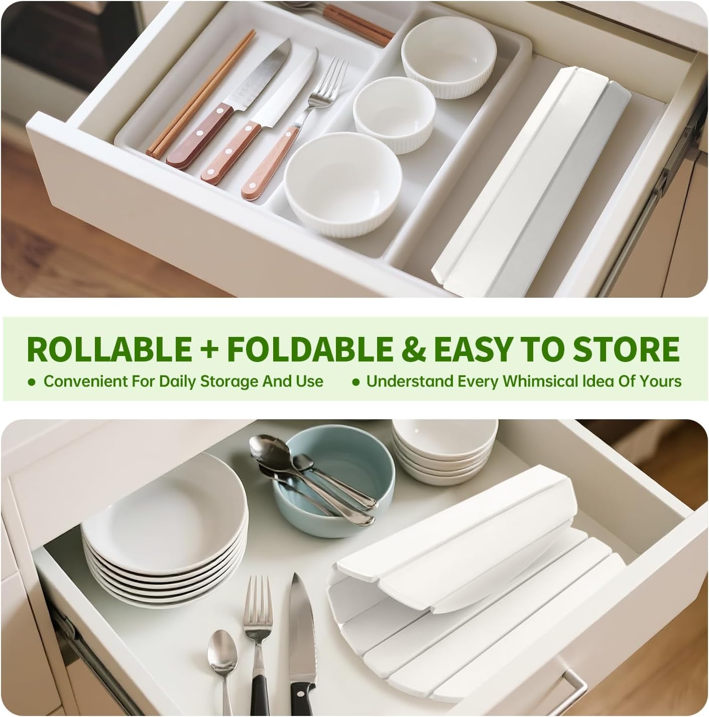 - Foldable and Space-Saving Design: The collapsible design allows quick dry stone mat kitchen to be conveniently rolled or folded for easy storage in drawers or cabinets, making stone drying mat for dishes an excellent space-saving solution for any home.