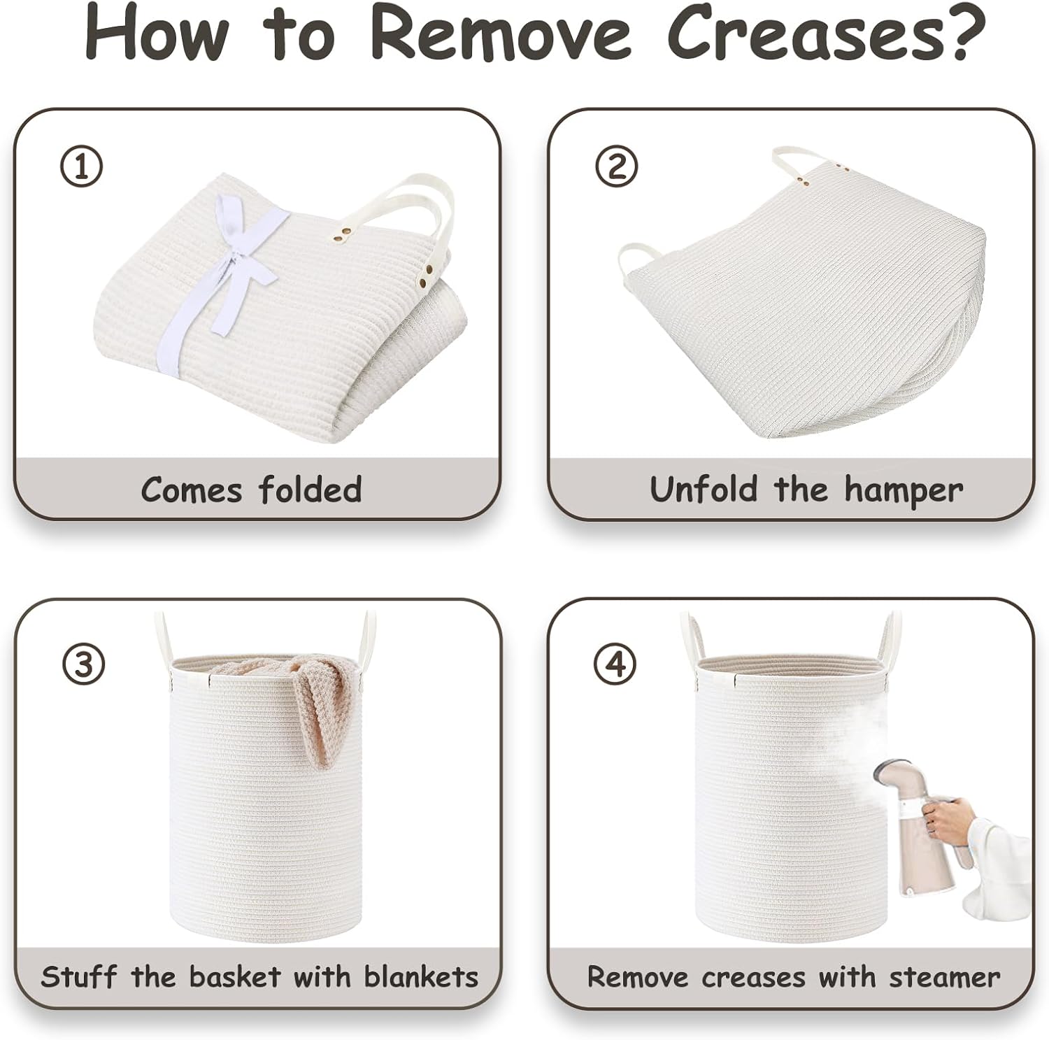 - ❤【WAY TO RESTORE ELEGANT SHAPE】 Our collapsible baskets are folded during shipping. Please fill the hamper with clothes or blankets for a period of time. If you want to remove creases from the surface of the tall basket, you can use a steamer.