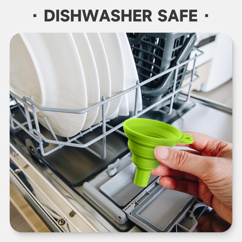 - 🧼 Easy to Clean & Eco-Friendly: The smooth silicone surface resists oil and residue, making cleanup a breeze—simply rinse with water or toss in the dishwasher for a spotless finish. Reusable hundreds of times, they replace wasteful disposable plastic funnels, saving money while reducing environmental impact.