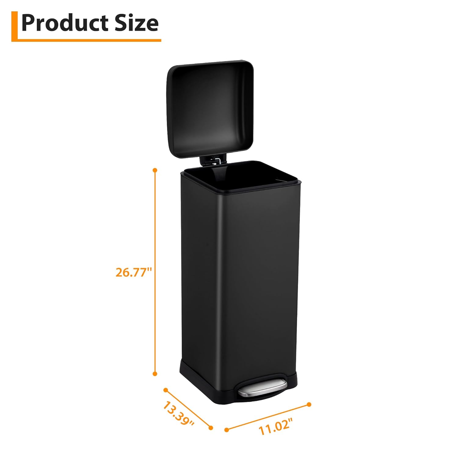TrailBlaze 8Gallon / 30l Kitchen Trash Can, Stainless Steel Rectangular Pedal Recycle Bin with Soft-Close Lid, Removable Inner Bucket, Fingerprint-Proof, Step Trash Can for Home, Kitchen