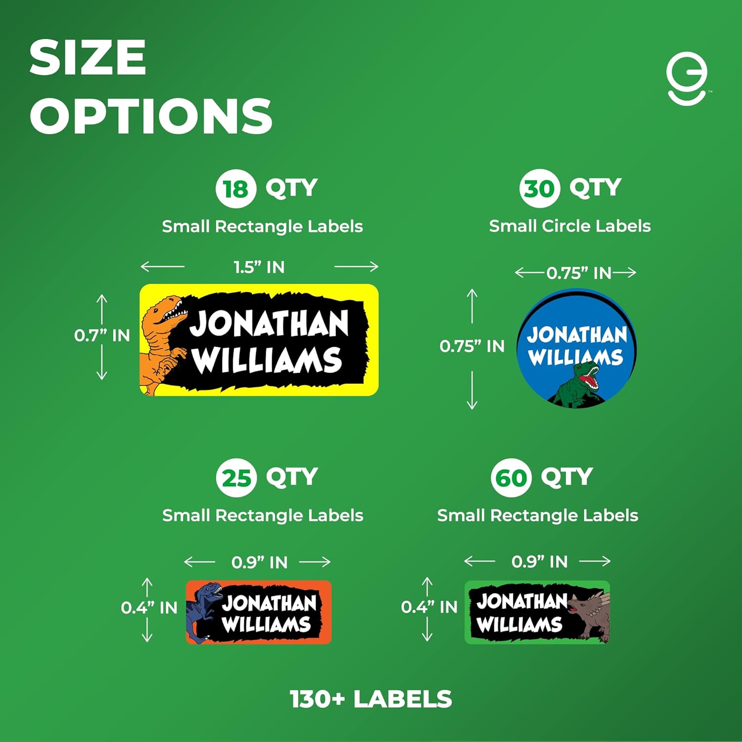 Personalized Name Tag Stickers for Kids (130+ Pack) | Dinosaur Waterproof Labels for School Supplies, Bottles & Lunch Boxes | Custom Vinyl Name Labels for Clothing & Toys (C. Dinosaur)