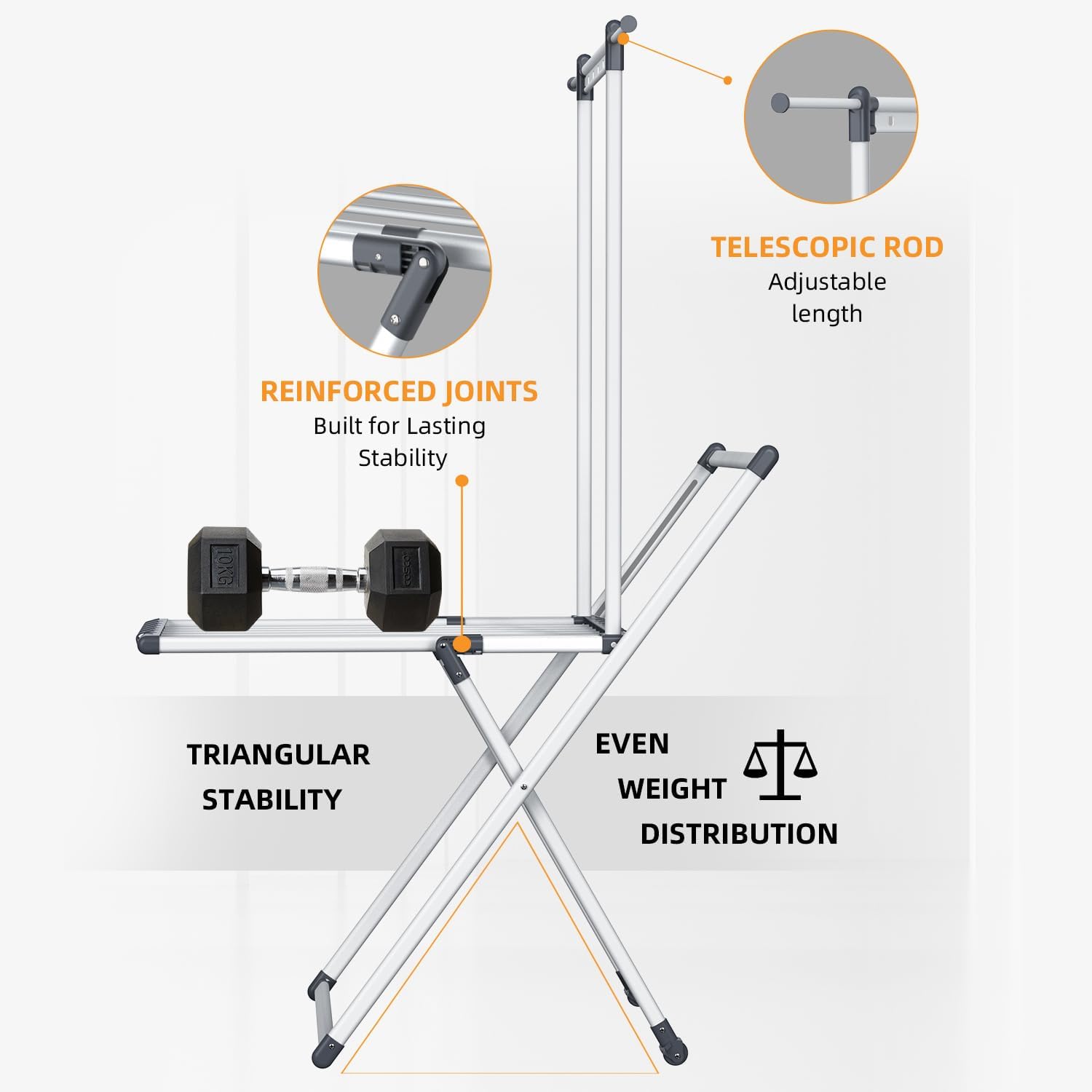 - Maximum Capacity and Stability: Featuring reinforced joints and triangle stability, this laundry drying rack ensures unmatched sturdiness while handling up to 60 lbs of laundry with ease. Designed with a durable aluminium frame for long-lasting use & Non-slip feet to provides stability.